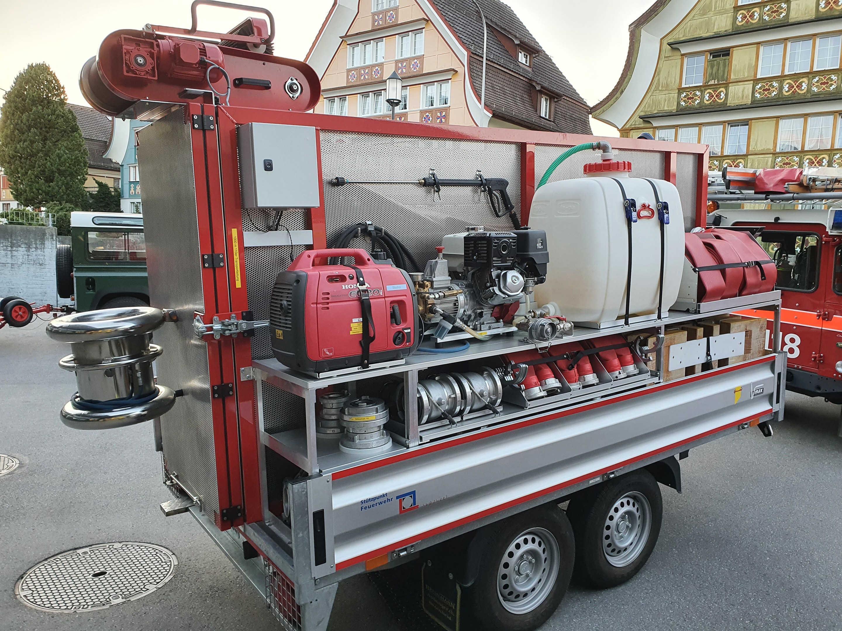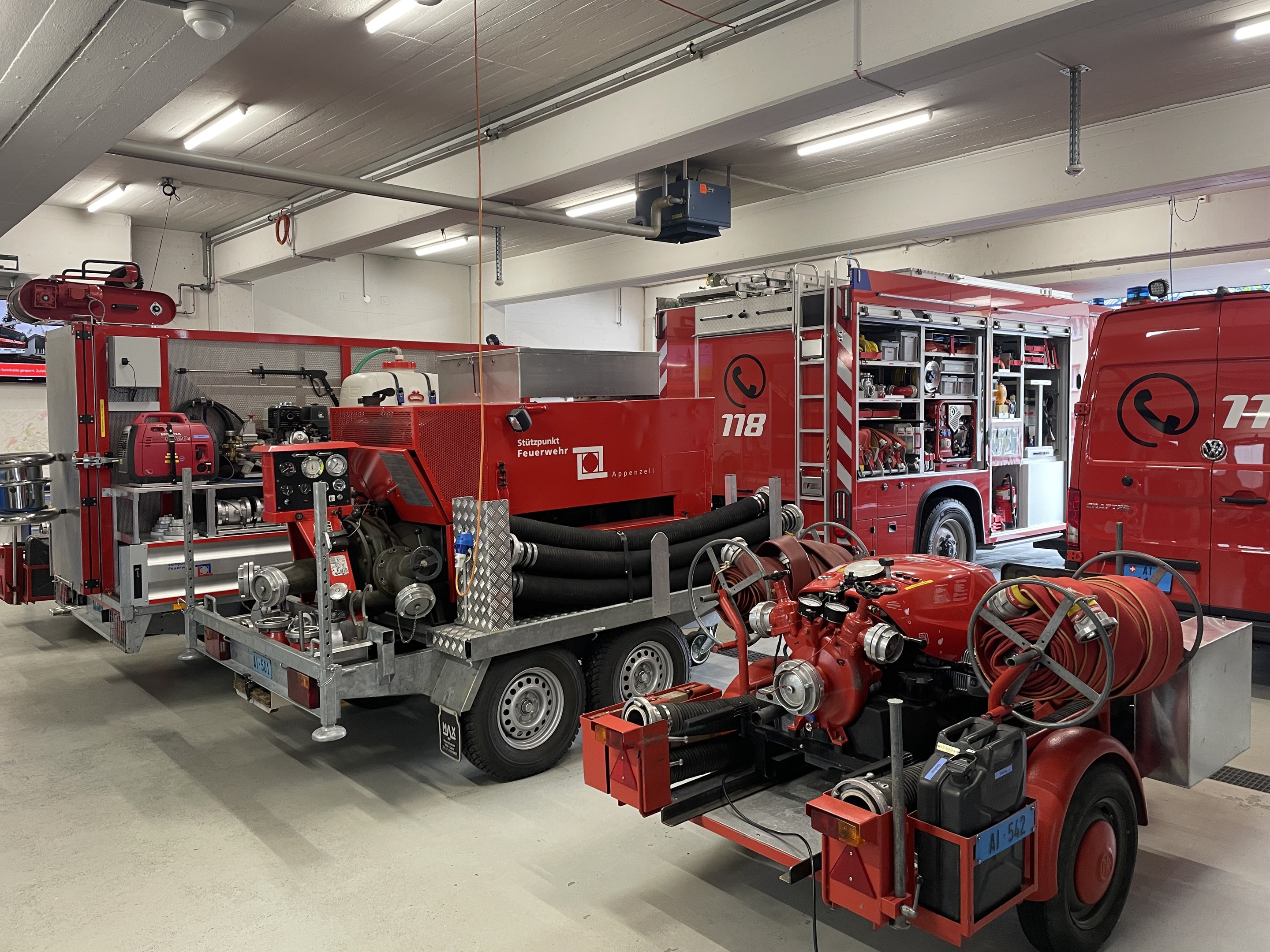 Ausrüstung / Depot https://publisher-ai.webcloud7.ch/feuerschaugemeinde/feuerwehr/ausruestung https://publisher-ai.webcloud7.ch/logo.png Ausrüstung / Depot Depots Wir betreiben ein Hauptdepot im Dorf Appenzell und ein Aussendepot in Meistersrüte. Depot Appenzell Bild Legende: Depot Nordseite Aussendepot Meistersrüte Bild Legende: Depot Meistersrüte Ausrüstung Neben den diversen Fahrzeugen verfügen wir über unterschiedliche Gerätschaften und Ausrüstungen die uns bei den vielfältigen Einsätzen unterstützen. Atemschutzgeräte Bild Legende: Atemschutzgerät 30 Stk. Dräger PSS4000 Wärmebildkameras Bild Legende: Wärmebildkamera Verschiedene4 Stk. Motorspritzen 1x MS Typ 4 (Armee)3x MS Typ 2 (Fox 2/3)1x MS Typ 1 (Armee) Schlauchverleger 1x 1'000m Schlauch 110mm2x 1'000m Schlauch 75mm Ölwehrmaterial 1x 10m Lenoir-Sperre1x 60m Einseilsperre1x Öltiger Strassenrettungsgeräte 1x Spreizer (Akku)1x Schere (Akku)1x Zylinder (Akku / hydraulisch)1x RIT-Tool Kombigerät (Akku)1x Rettungsplattform2x Stütze für Fahrzeugstabilisierung Modulwagen Diverse Modulwagen mit unterschiedlichem themenspezifischem Material Leiterwagen 1x 14m Schiebeleiter mit Stützen1x 11m SchiebeleiterDiverse Anstell-/Dachleitern Erdungsset Bild Legende: Erdungsgarnitur / Spannungsprüfer 2x Erdungsgarnitur1x Spannungsprüfer