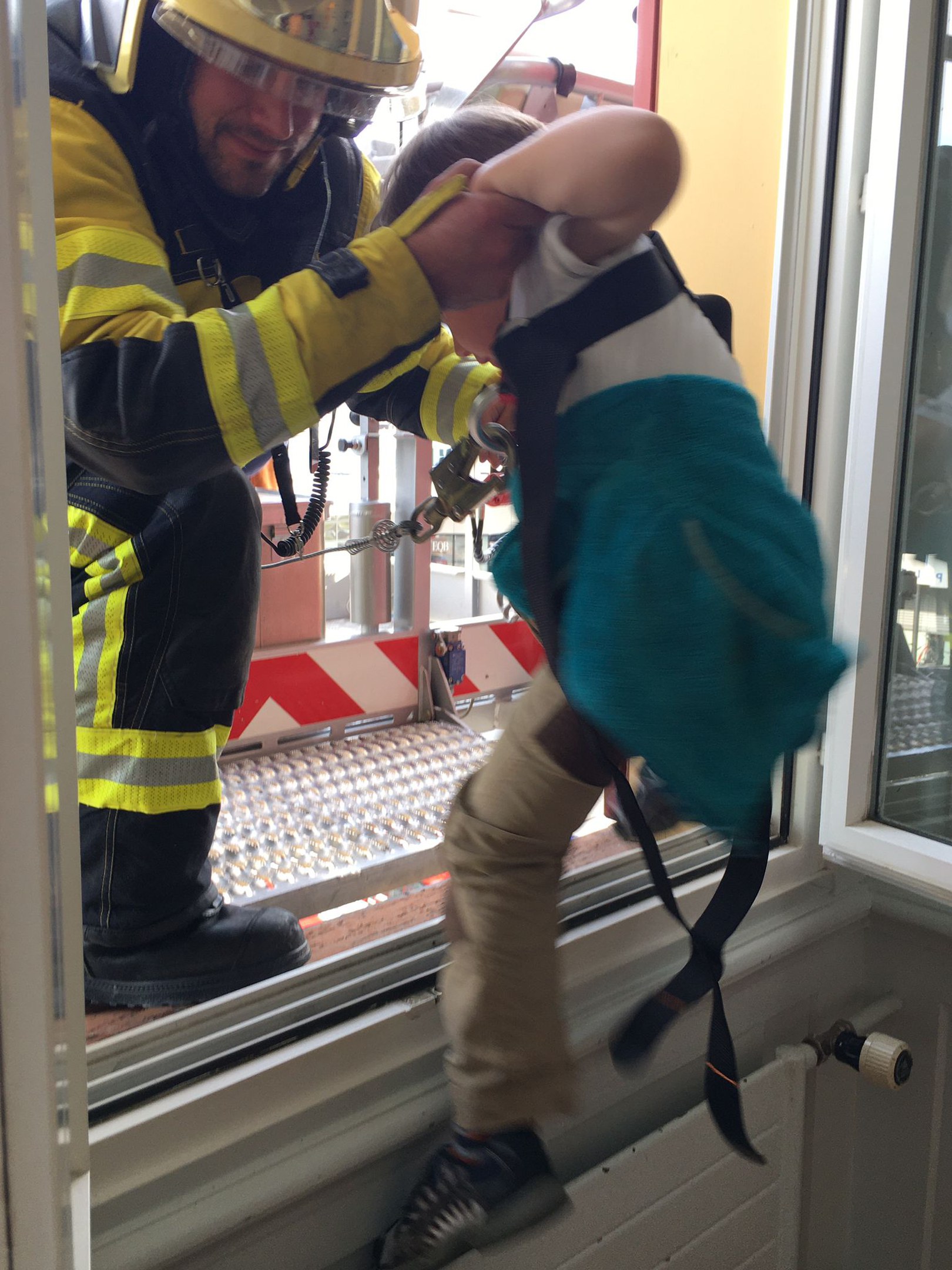 Vor Ort traf der Einsatzleiter ein Feuer im ersten Stock und diverse Rettungen an. Die Kinder und Betreuenden konnten sowohl mit dem Hubretter, als auch klassisch über die Leiter gerettet werden.