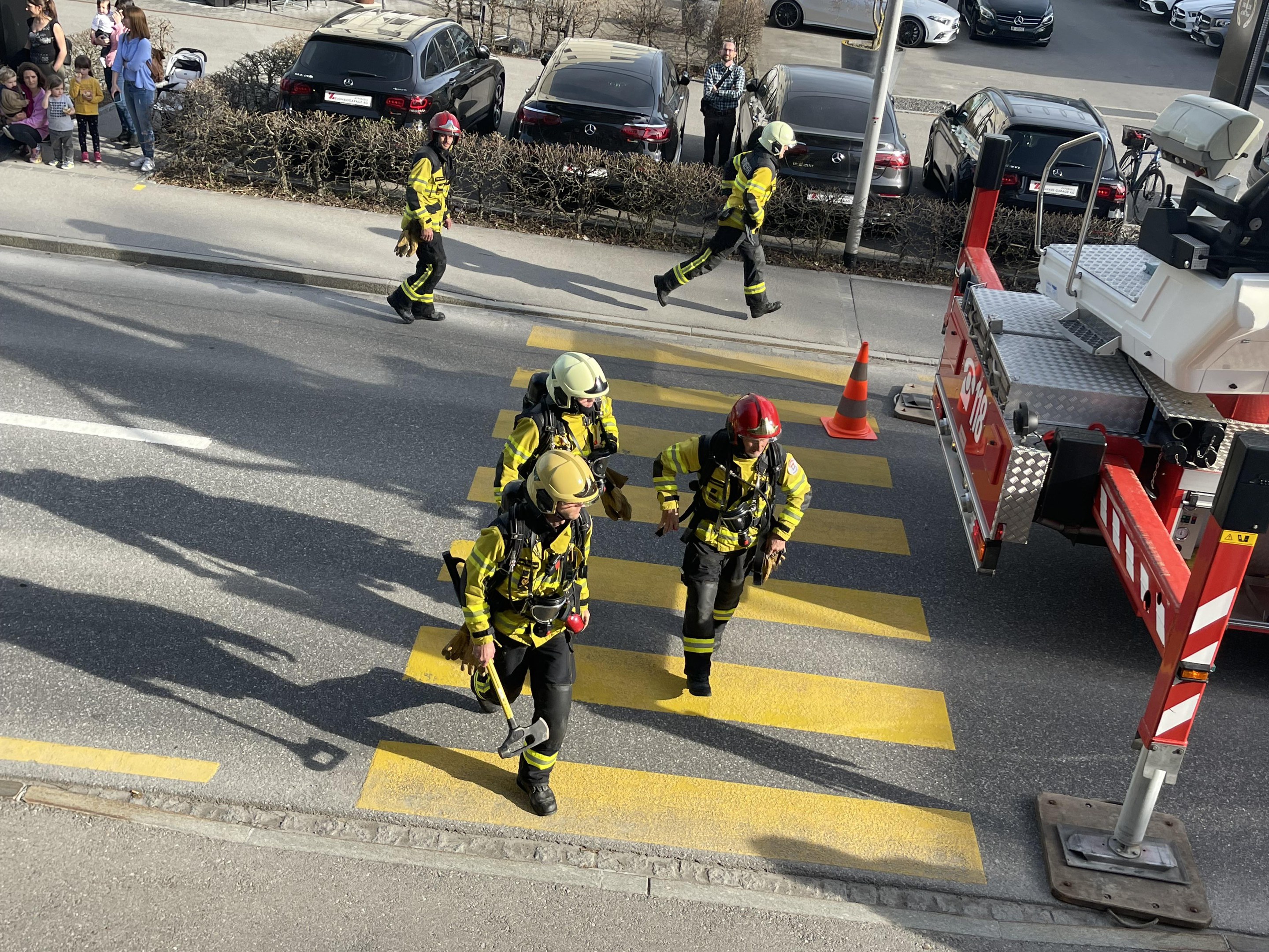 Zur Gewährleistung der Sicherheit (Feuerwehr und Kinder des Chinderhorts) musste ein Abschnitt der Gaiserstrasse für die Dauer der Übung gesperrt werden. An dieser Stelle möchten wir uns bei allen Verkehrsteilnehmern für das entgegengebrachte Verständis bedanken.
