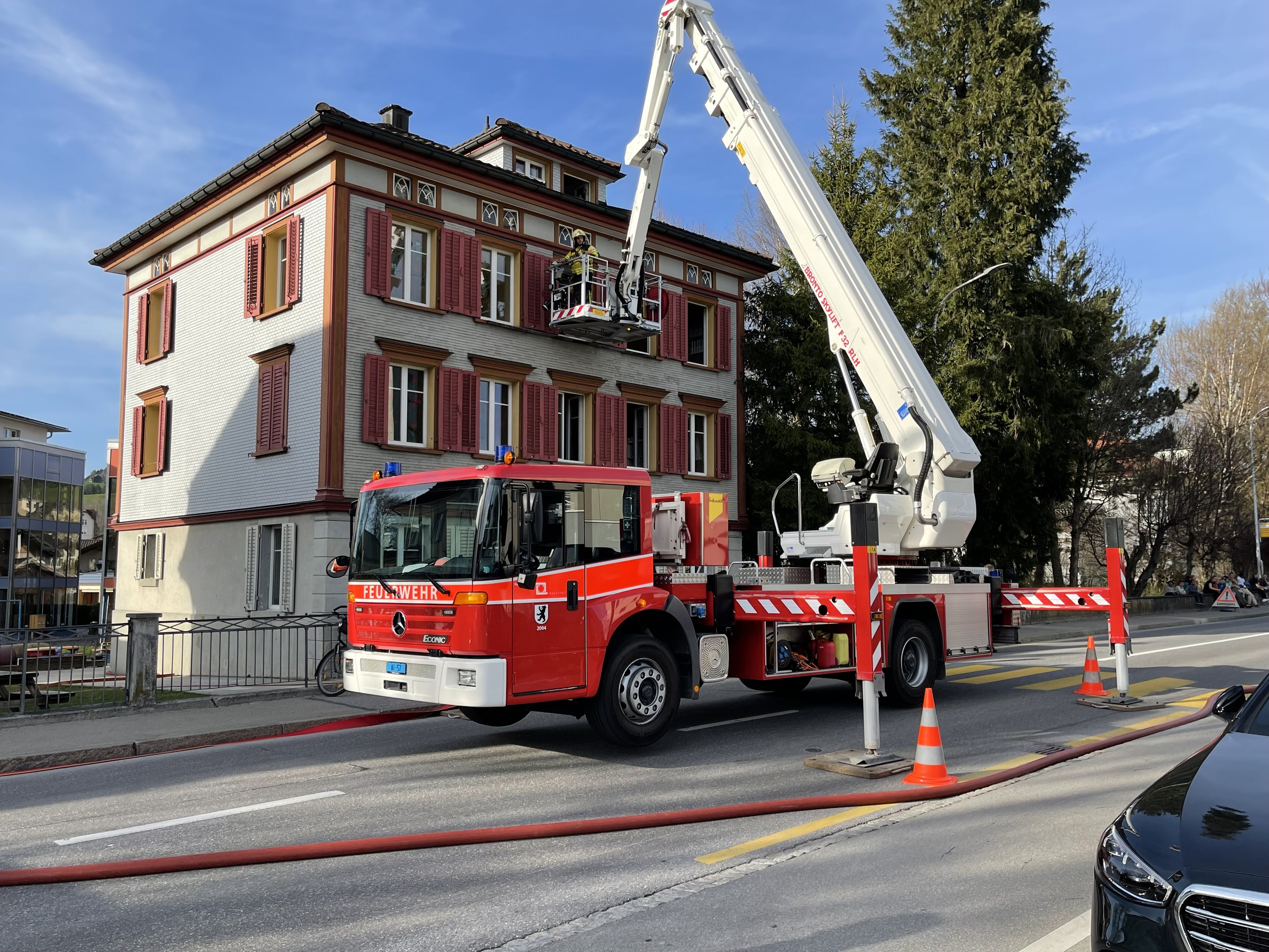 Am 13.04.2022 um 17:30 Uhr wurde die Stützpunktfeuerwehr Appenzell mit der Meldung "Zimmerbrand, Gaiserstrasse 17, Appenzell" zur Alarmübung aufgeboten.