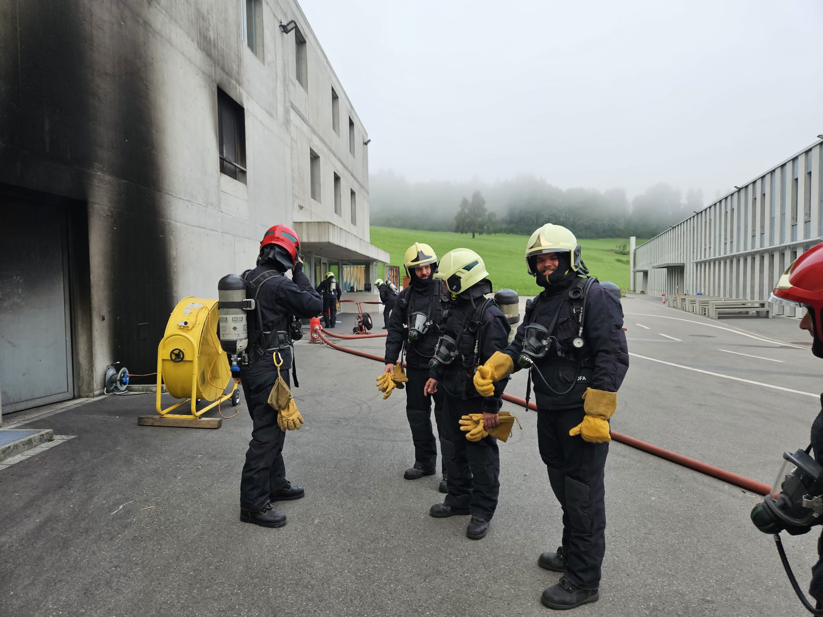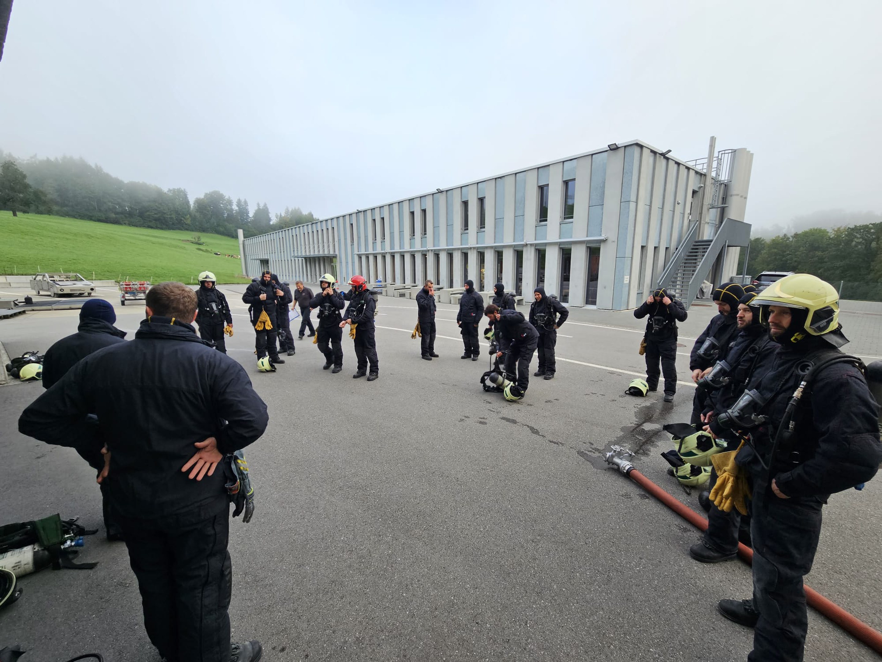 Alternierend werden die Atemschützler im Ostschweizer Feuerwehr-Ausbildungszentrum (OFA) in der Brandbekämpfung geschult. Mit diesen Trainings am realen Feuer können die Teilnehmer wertvolle Erfahrungen für den Ernsteinsatz sammeln.