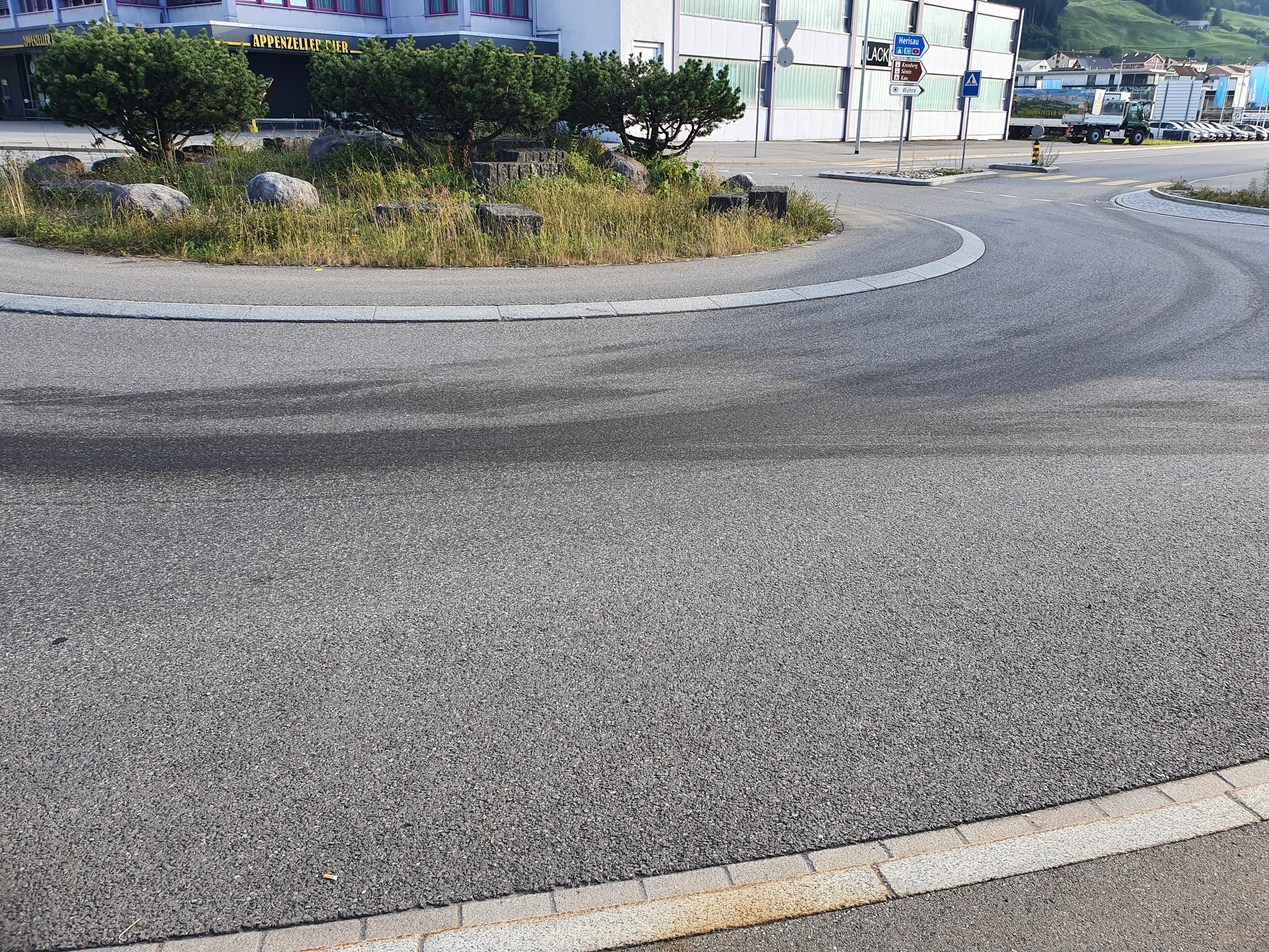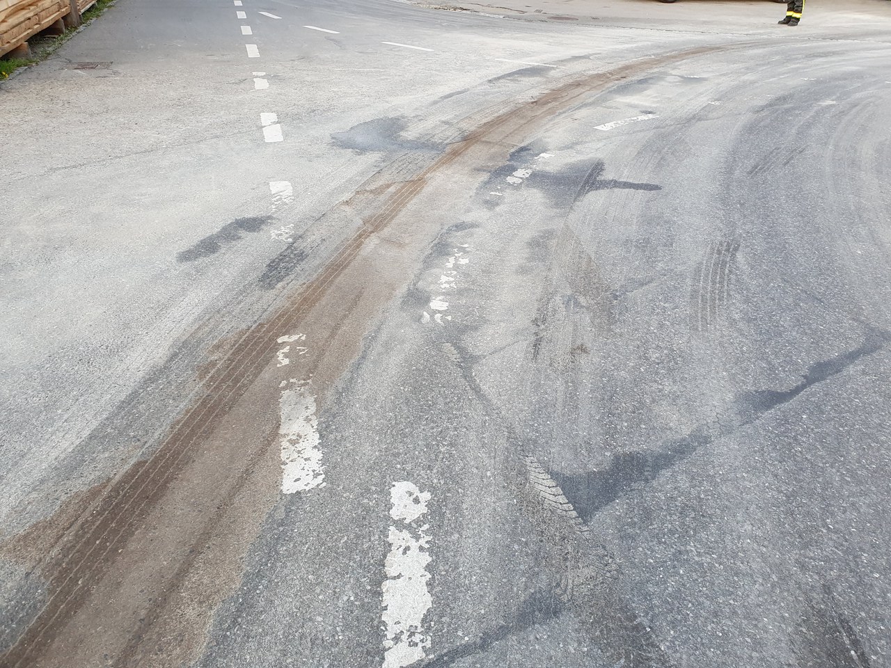 Signalisieren und Ölspur abstreuen. Teilweise aufnehmen und erneutes abstreuen mit Ölbinder notwendig. Aufgebot Landesbaumt mit Reinigungsmaschine.