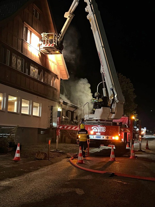 Der Einsatzleiter hat zur Rettung von Personen den Hubretter der Stützpunktfeuerwehr Appenzell angefordert.