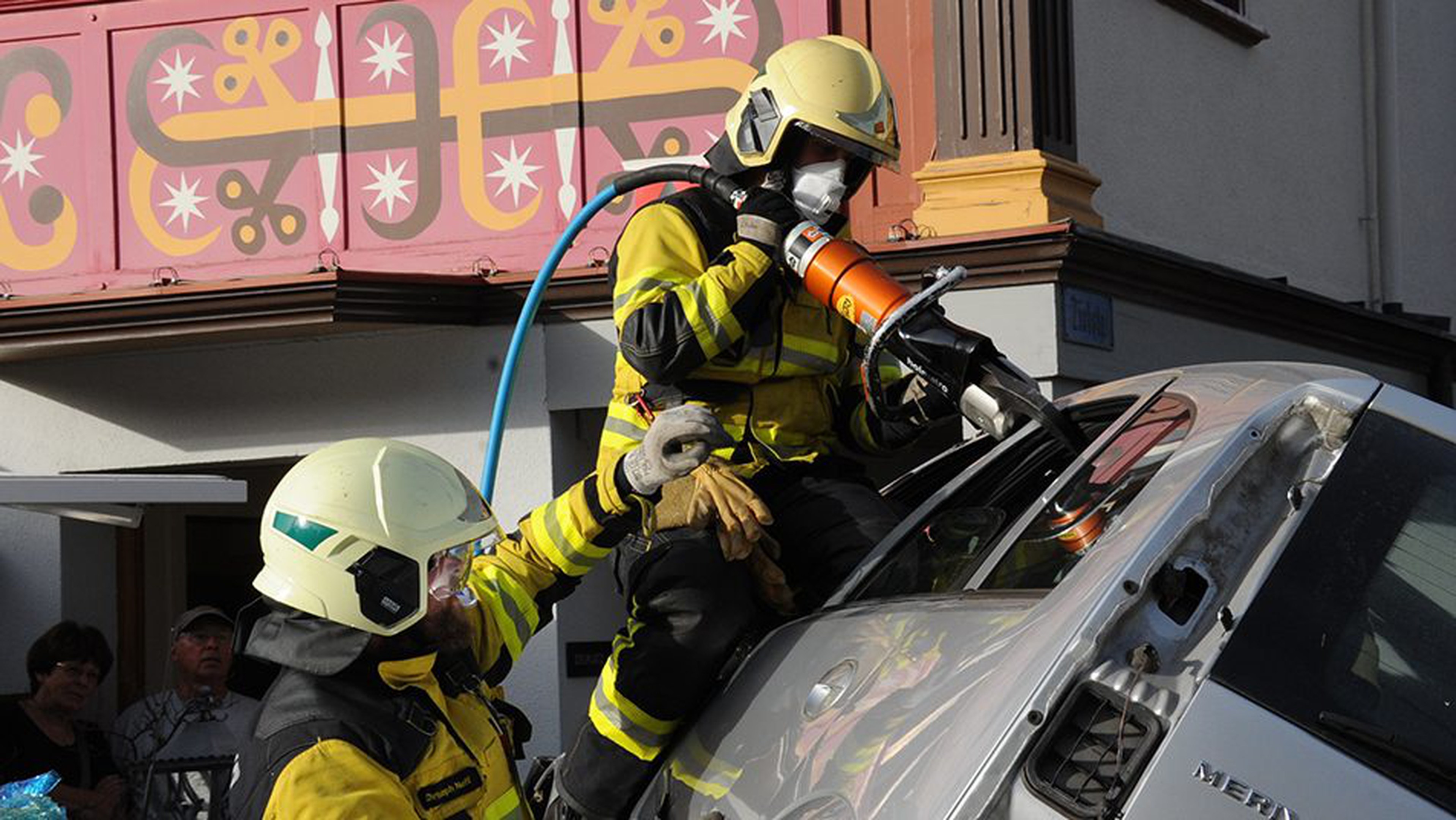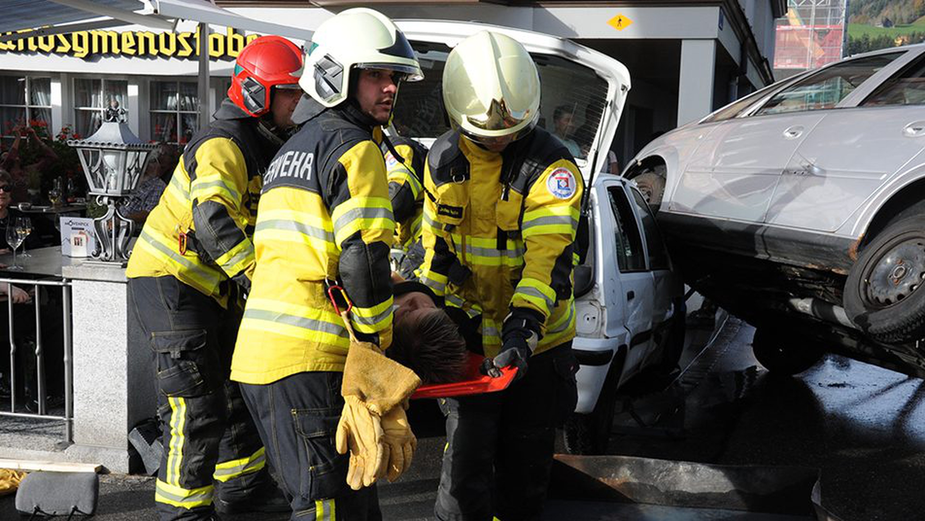 Vor Ort traf der Einsatzleiter ein Verkehrsunfall mit vier Rettungen, sowie ein Brandübergriff auf ein Hotel mit einer weiteren Rettung fest. Für die Rettungen der Personen aus den verunfallten Fahrzeugen musste zuerst mit den Strassenrettungsgeräten einen Zugang geschaffen werden.