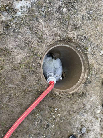 Beschreibung: Abdichten und Spülen der Meteorleitung