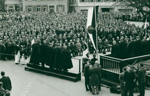 Noch eine reine Männer-Angelegenheit: Innerrhoder Landsgemeinde 1962 [Foto Stefan Grubenmann, Appenzell; Landesarchiv Appenzell Innerrhoden]