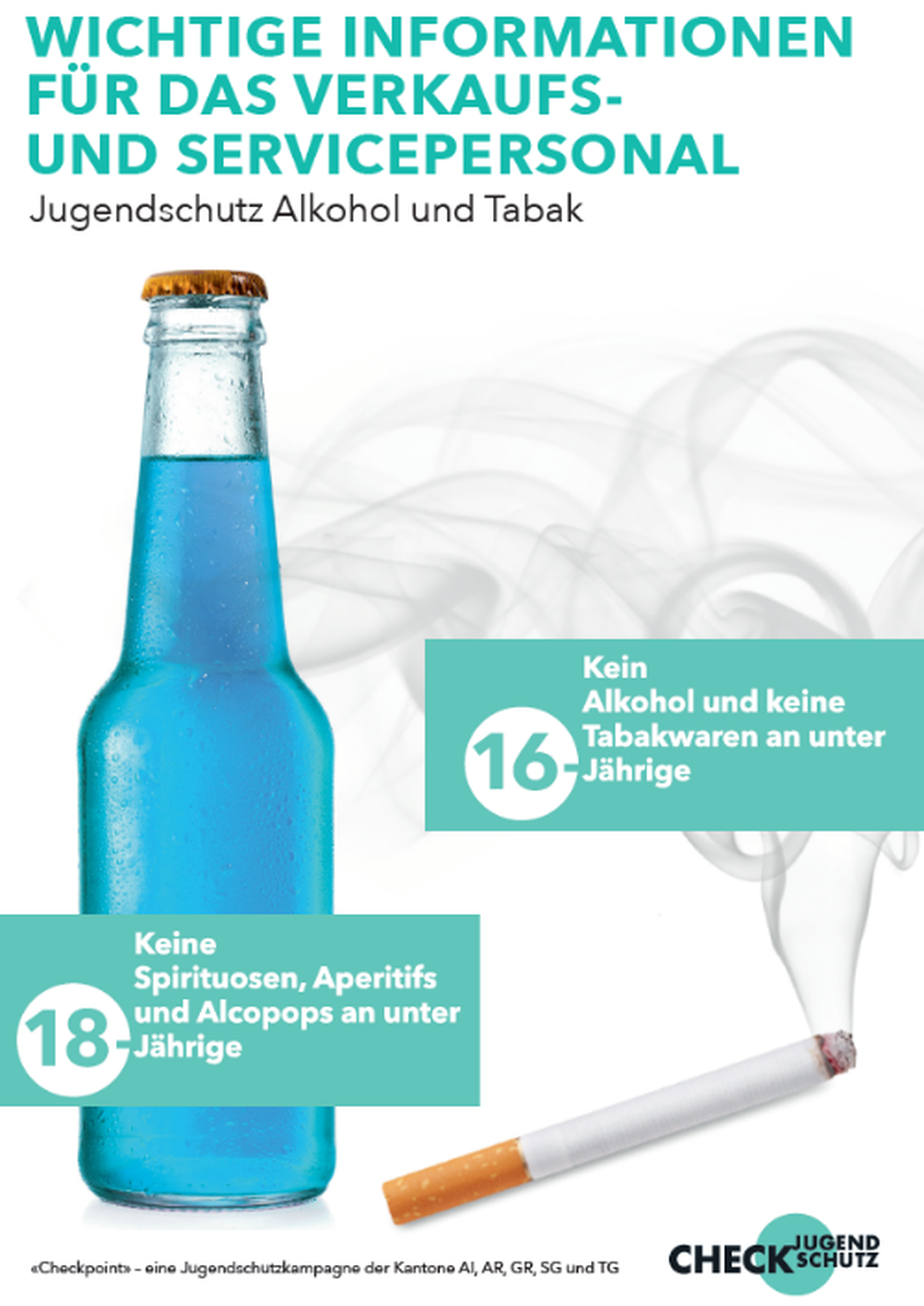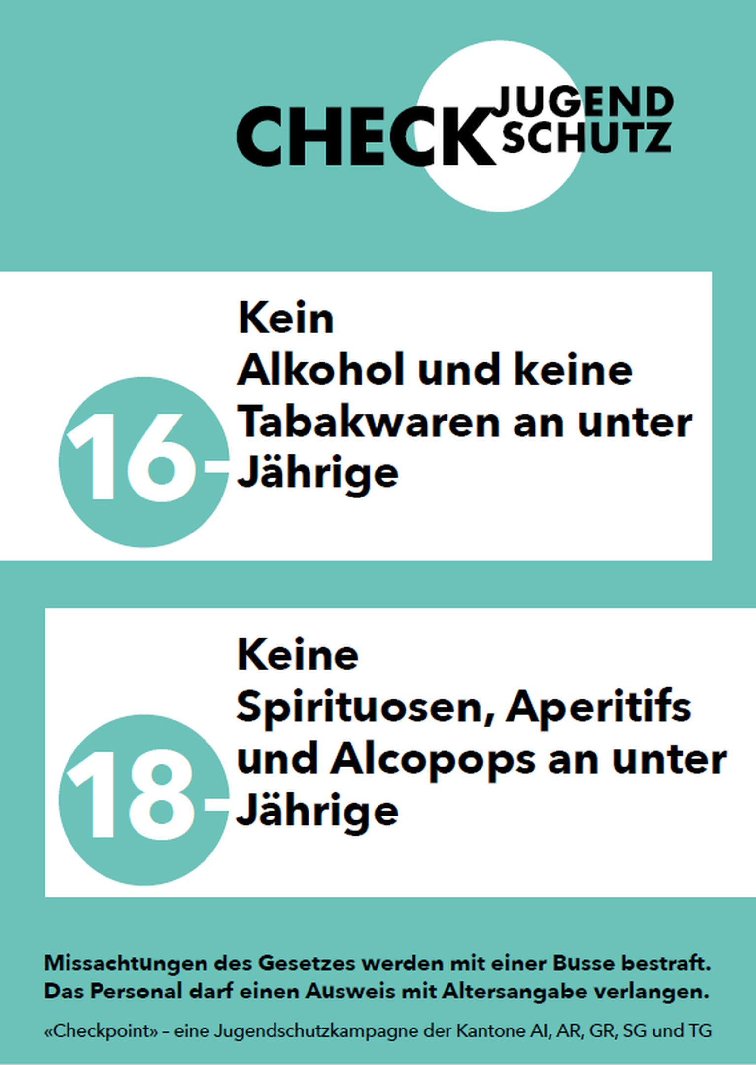 Kinder und Jugendliche, die sich noch im Wachstum befinden, reagieren besonders sensibel auf regelmässigen und übermässigen Konsum von Suchtmitteln. Alkoholkonsum wirkt sich beispielsweise negativ auf die Entwicklung des Gehirns aus. Um eine möglichst gesunde Entwicklung junger Menschen zu fördern, gelten die gesetzlichen Grundlagen zum Jugendschutz. So dürfen beispielsweise Spirituosen nur an über 18-Jährige verkauft und abgegeben werden. Mit verschiedenen Angeboten unterstützt die Beratungsstelle für Suchtfragen Gastronomiebetriebe, Detailhändler und Veranstalter bei der Einhaltung der Jugendschutzbestimmungen. Die etablierten «Checkpoint» Jugendschutz-Materialien sind komplett überarbeitet worden und erscheinen seit Anfang März 2019 im aufgefrischten Design.