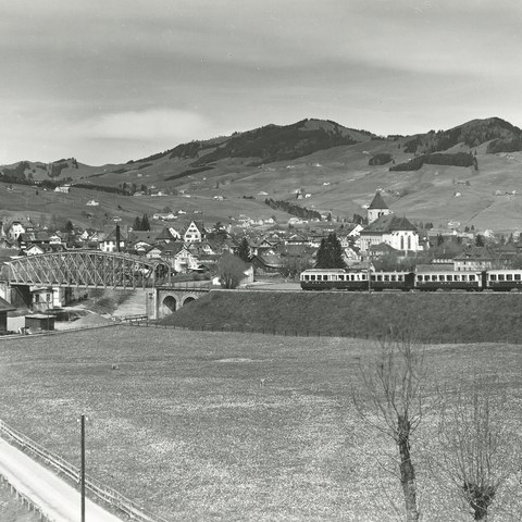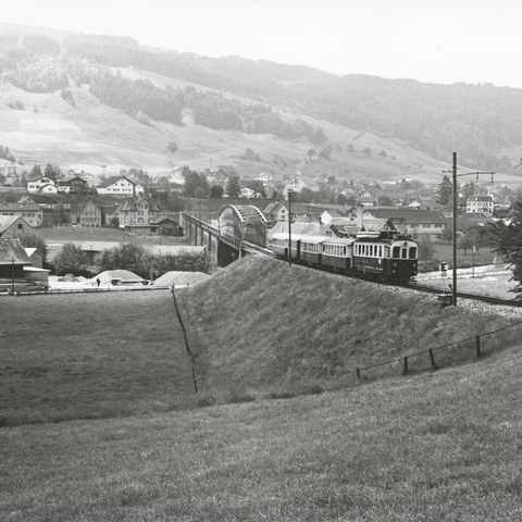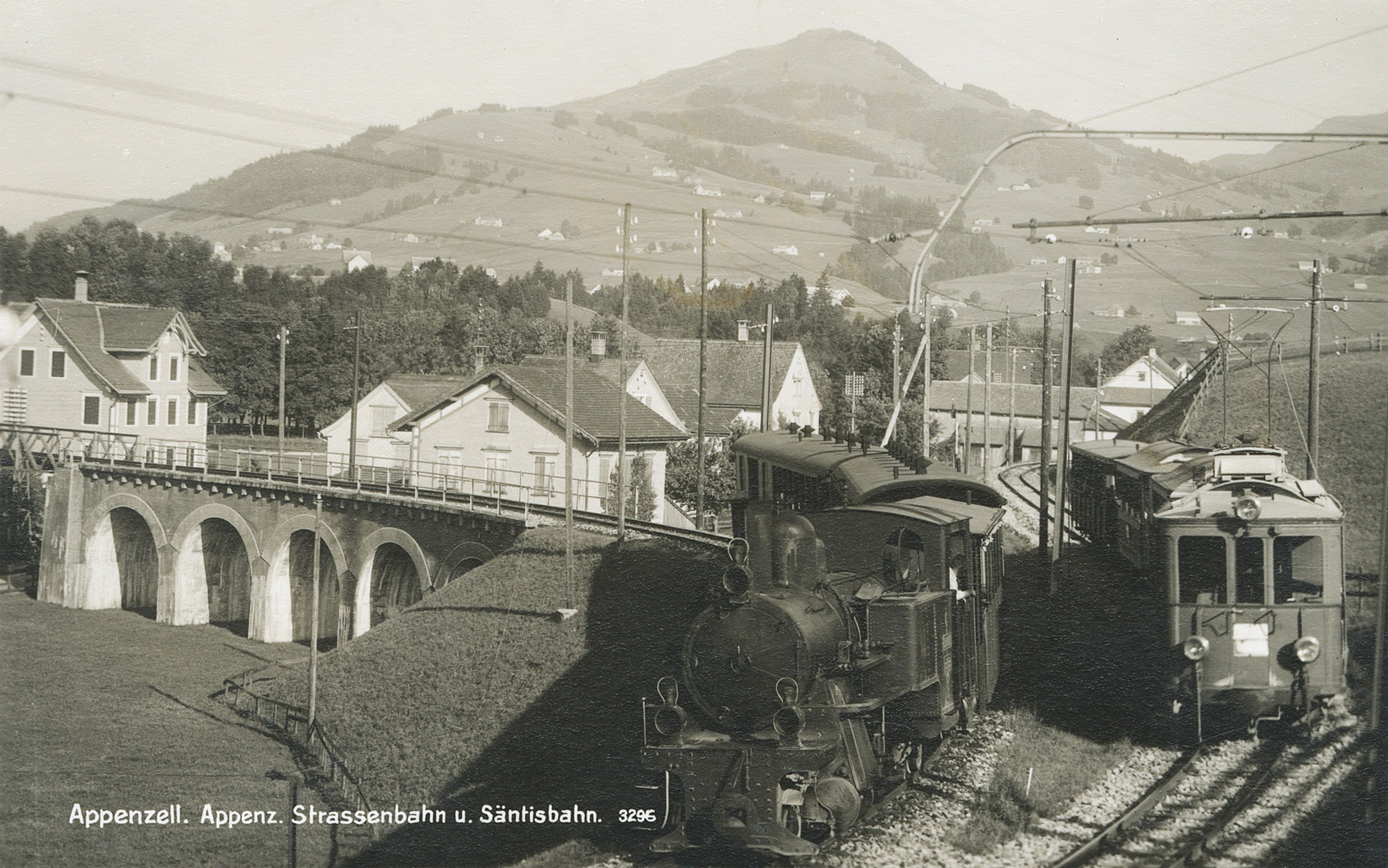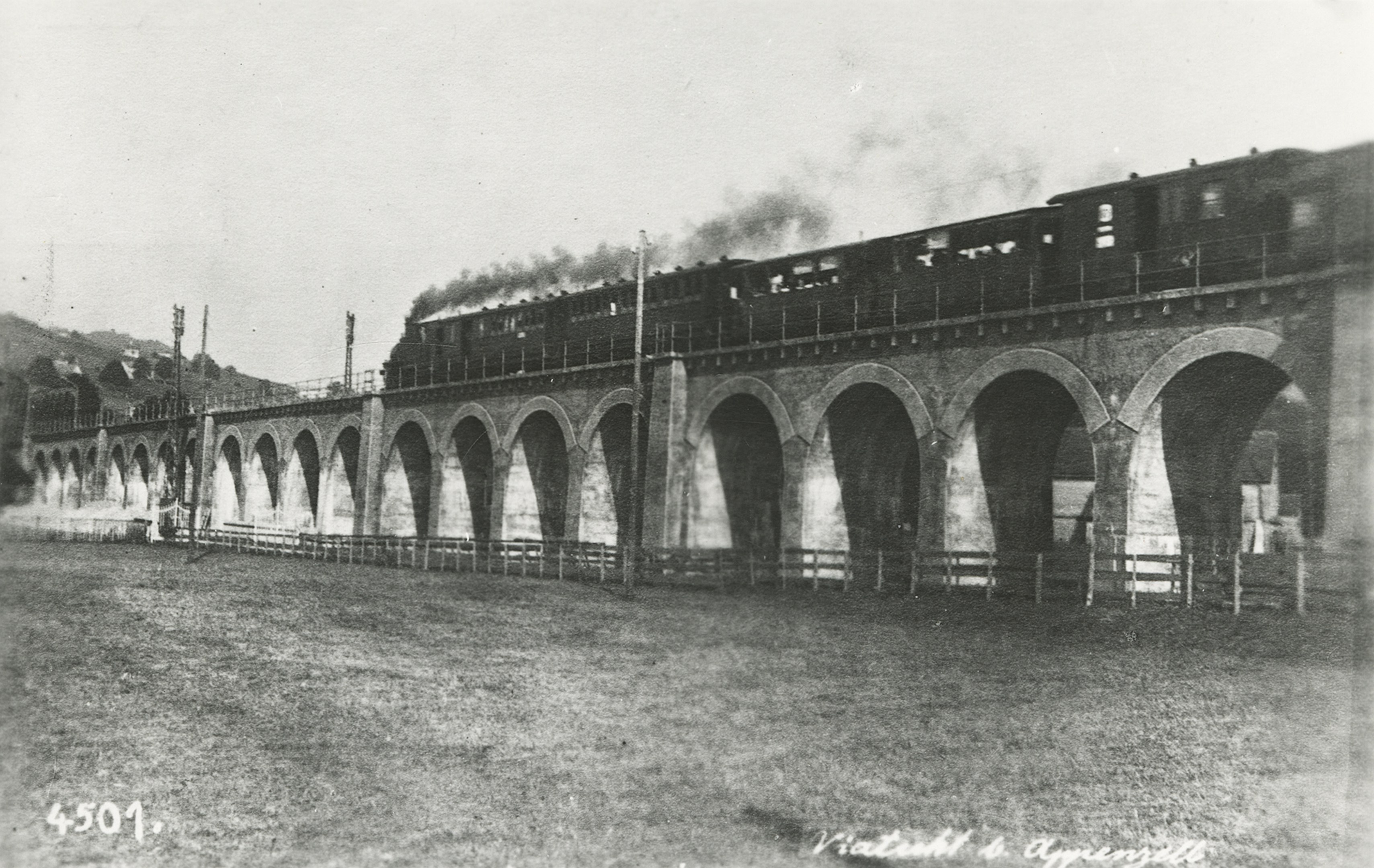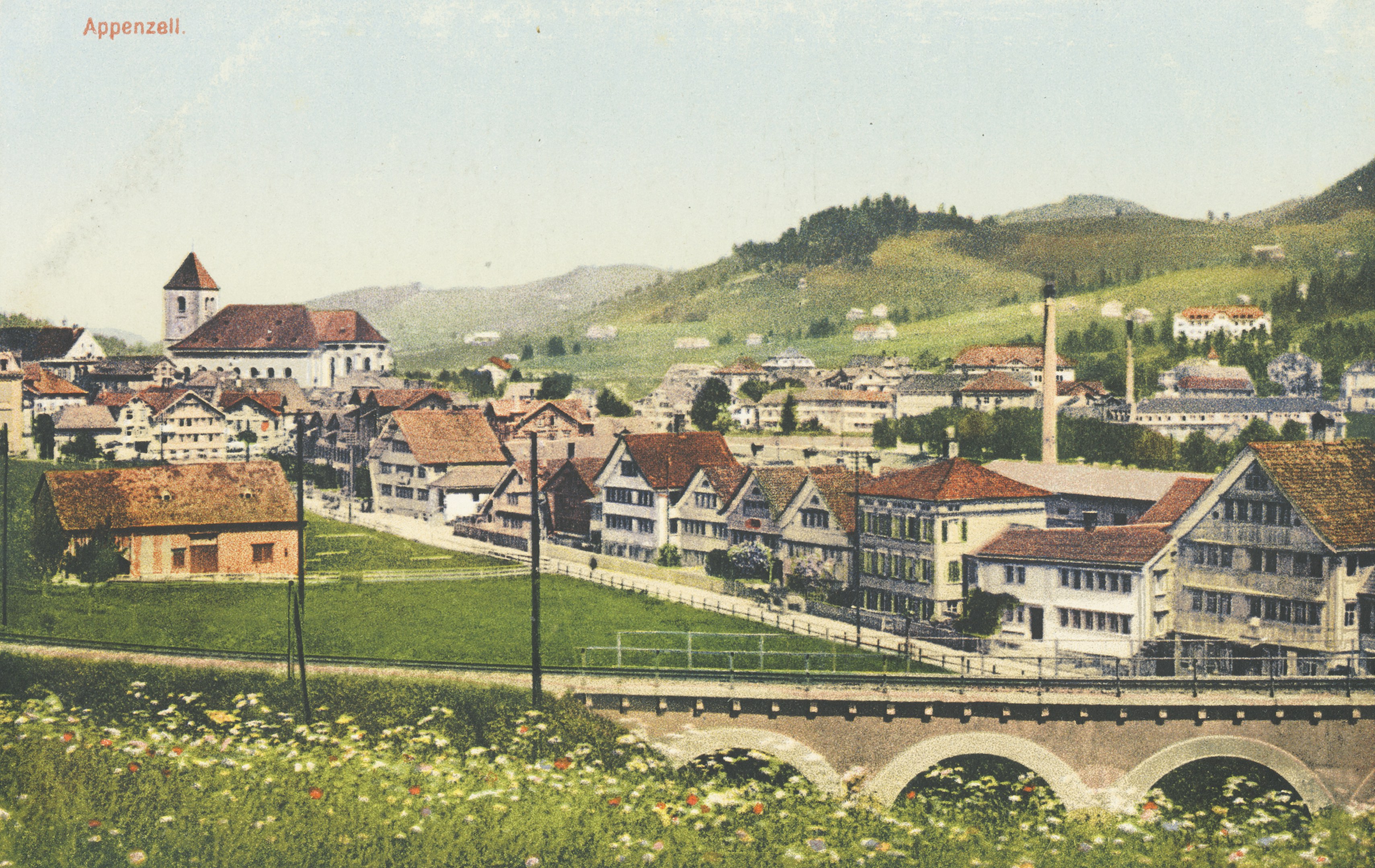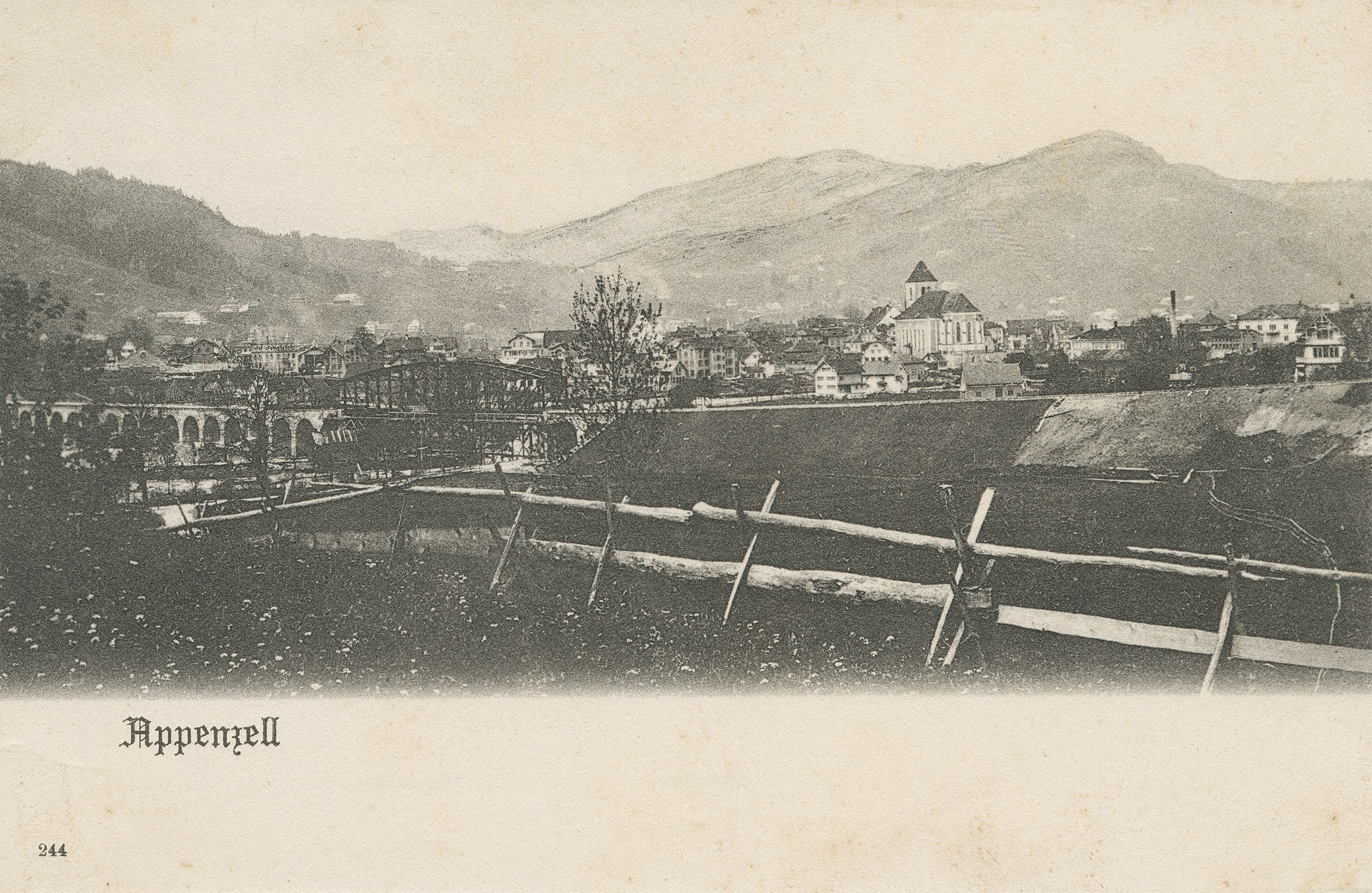 1904 wurde die Strassenbahn von St. Gallen nach Gais bis Appenzell verlängert. Seither bildet das imposante Eisenbahnviadukt des "Gaiserbähnlis" über die Sitter und die Talsenke eine architektonische Landmarke. 2024 wird das Viadukt von den "Appenzeller Bahnen" aufwändig saniert. Die Bildergalerie zeigt einige Postkarten und Fotos aus der Bildersammlung des Landesarchivs. Besonders auf älteren Ansichten steht das neue Viadukt im Mittelpunkt. Zusammen mit den dampfenden Loks und den Hochkaminen der Emil Ebneter AG und der Brauerei Locher will es den Einzug der Moderne in Appenzell symbolisieren.