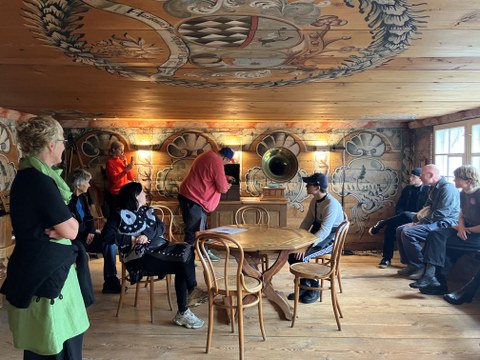 Das zweijährlich stattfindende IBK-Format der Künstler:innenbegegnung, das dieses Jahr die beiden Appenzeller Kantone gemeinsam verantworten, besteht 2025 aus zwei Teilen. Während der initialen «Schall- und Klangtage» auf der Schwägalp arbeiteten und vernetzten sich Ende September 17 Kunstschaffende aus der Bodenseeregion intensiv. Stationen im Museum Heiden, beim Jagdpavillon in Lutzenberg, im Roothuus Gonten, eine Wanderung von der Schwägalp zum Chamm und der Clubhütte des SAC Säntis sowie die Besichtigung des Säntisgipfels mit dem Wetterwartehaus begünstigten die auf Anhieb gut verortete Begegnungskultur unter den Kulturschaffenden. Während diesen Tagen schufen die Teilnehmenden vielfältige Klang-, Bewegungs-, Denk- und Farbräume – immer mit dem Thema «Im Banne von Bildern – Sagen und Mythen als Motor» im Hinterkopf.