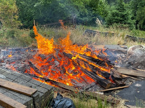 Es wurden Balken und Bretter eines alten Dachstocks verbrannt.