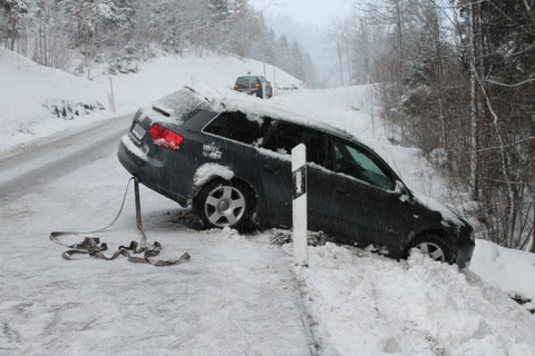 Eggerstanden - Mit Auto auf Schneefahrbahn verunfallt