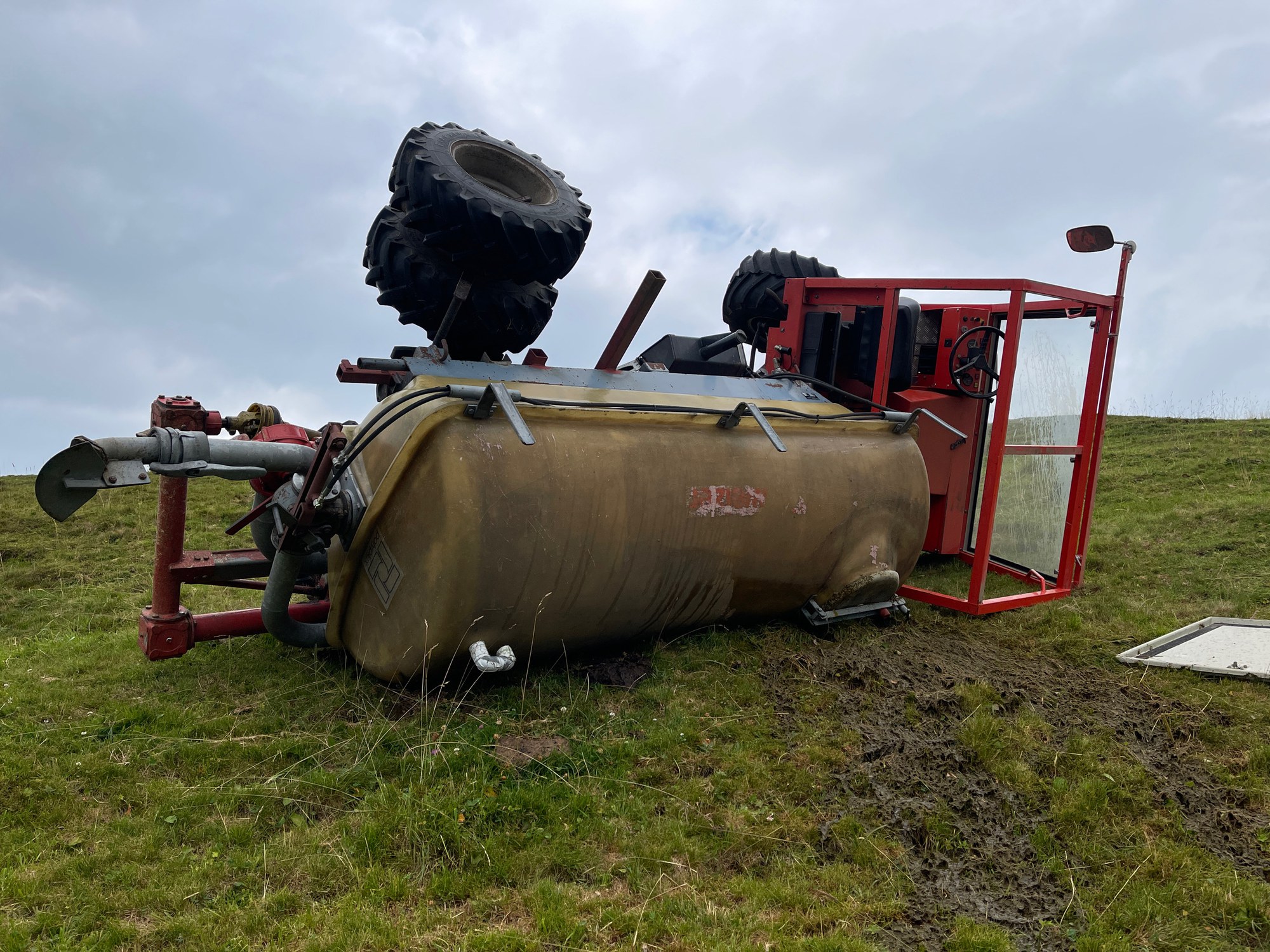 Gonten - Beim Jauche austragen überschug sich ein landw. Transporter