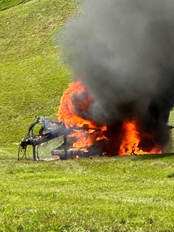 Die Rundballenpresse brannte vollständig aus.