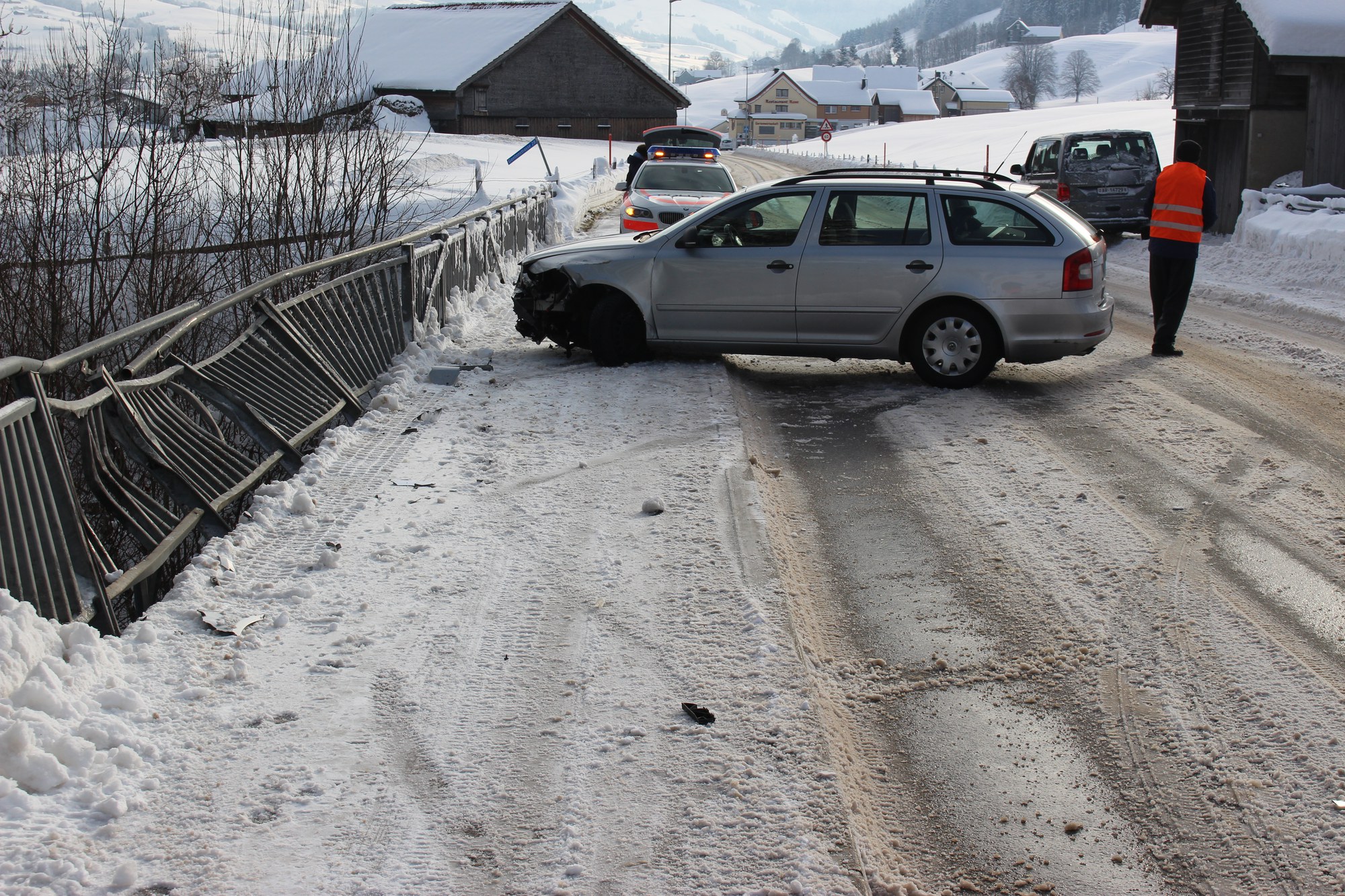 Am Freitagvormittag, (11.01.2019) fuhr eine 41-jährige Frau mit ihrem Auto von Gontenbad her in Richtung Appenzell. Die Strasse war leicht mit Schneematsch bedeckt. Vor der Kaubachbrücke kam das Auto ins Schleudern und rutschte schliesslich mit grosser Wucht in das Geländer der Kaubachbrücke. Am Auto und am Brückengeländer entstand grosser Sachschaden.