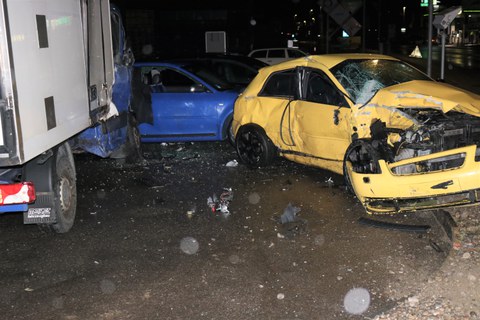 Gestern Samstag ereignete sich in Appenzell auf der Umfahrungsstrasse gegen 2300 Uhr ein Verkehrsunfall. Ein in Richtung Mettlen-Kreisel fahrender Pw geriet auf die Gegenfahrbahn und krachte anschliessend auf dem Vorplatz der Tennishalle gegen mehrere dort korrekt parkierte Fahrzeuge.