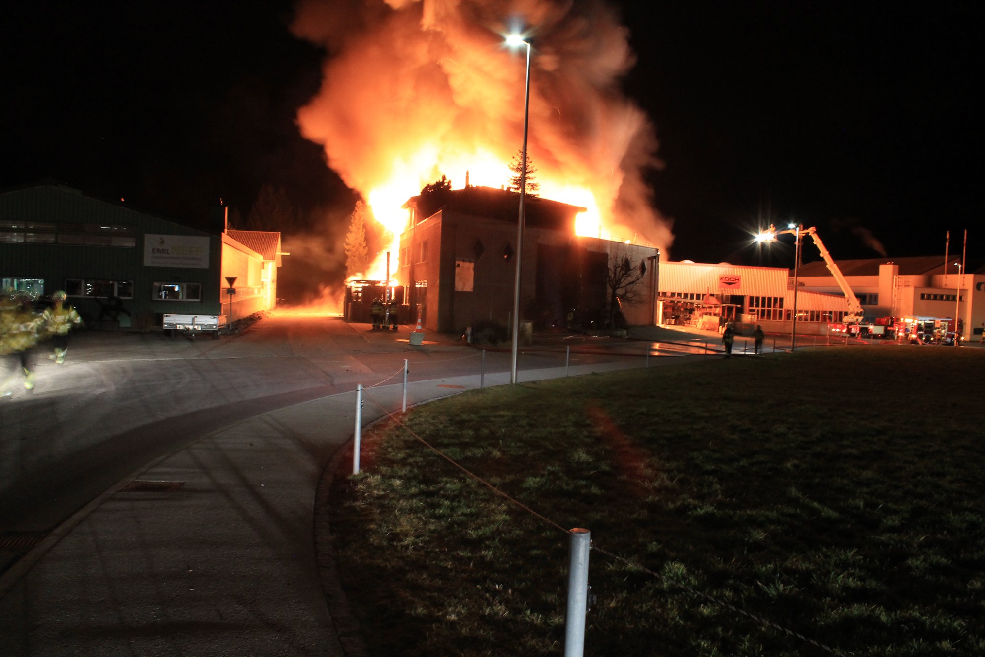 Am frühen Donnerstagmorgen wurde die Feuerwehr wegen einem Brand im Industriegebiet von Appenzell alarmiert. Im Gebäude einer Dachdeckerfirma brannte es lichterloh. Zwei unmittelbar angrenzende Gewerbegebäude wurden ebenfalls beschädigt. Aufgeboten wurden die Stützpunktfeuerwehr von Appenzell, die Feuerwehr Rüte und die Regiowehr Teufen-Bühler-Gais. Insgesamt waren über 100 Angehörige der genannten Feuerwehren im Einsatz. Weiter wurde der Pikettdienst vom Amt für Umwelt aufgeboten.
