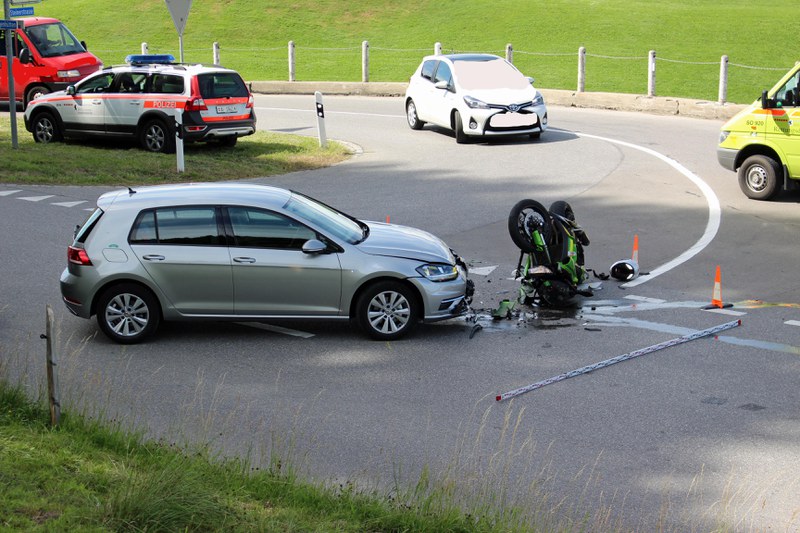 Das Motorrad erlitt Totalschaden und am Personenwagen entstand massiver Sachschaden
