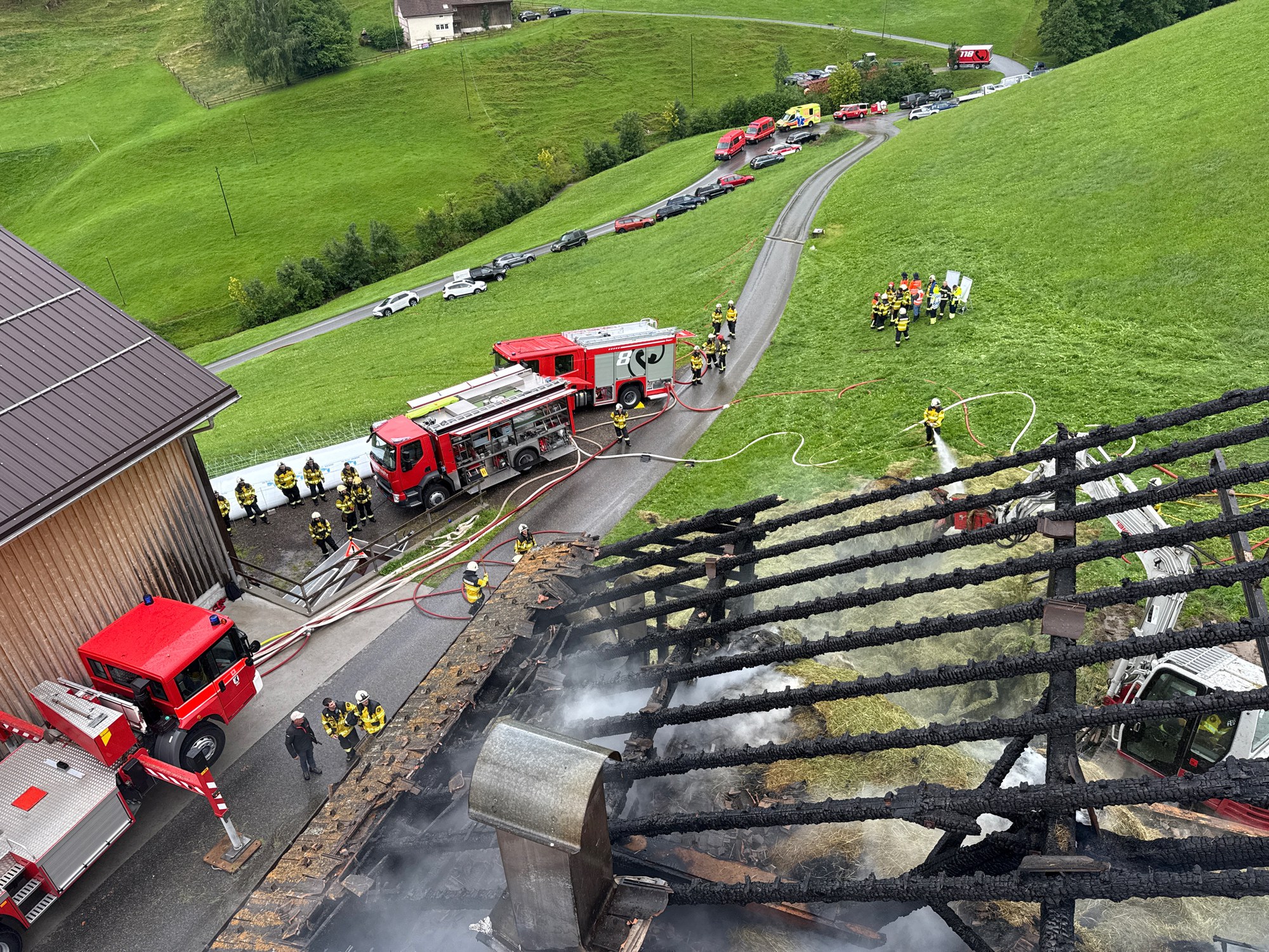 Am Samstagnachmittag, 19. Juli 2025, kurz vor 15.30 Uhr, wurde der Einsatzzentrale ein Brand eines Stallgebäudes in Gonten gemeldet. Beim Eintreffen der Einsatzkräfte stand das landwirtschaftlich genutzte Gebäude bereits in Vollbrand.