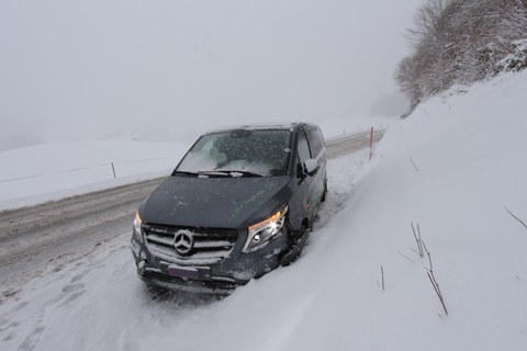 Wegen eines Bremsmanövers geriet ein dunkler Lieferwagen ins Schleudern und kollidierte mit einer Mauer.