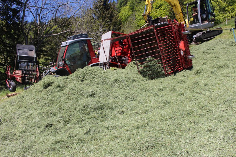 Am Dienstagmittag (01.06.2021) war ein 29-jähriger Landwirt auf seinem Grundstück mit dem Heuladewagen an der Arbeit. Auf der steilen Wiese kippte das Fahrzeug aus noch nicht bekannten Gründen auf die Seite. Dabei klemmte sich der junge Landwirt das Bein zwischen der Führerkabine und der Wiese ein. Bei der Bergung waren die Feuerwehren von Appenzell und Gonten, sowie Nachbarn und die Rega im Einsatz.