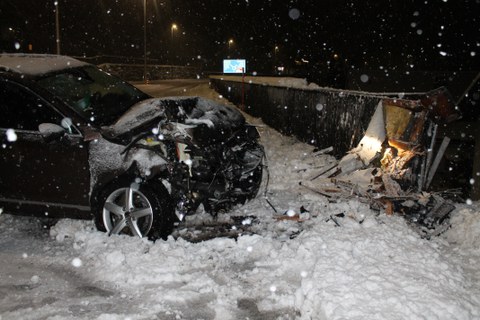 Am Sonntagabend (06.12.2020) um zirka 21:00 Uhr fuhr ein ortskundiger Autofahrer auf der Gaiserstrasse vom Spitalkreisel in Richtung Hirschbergkreisel. Auf der schneebedeckten Fahrbahn geriet sein Auto ausser Kontrolle und kollidierte heftig mit der rechtsseitigen Schallschutzwand. Am Fahrzeug und an der Schallschutzwand entstand grosser Sachschaden.