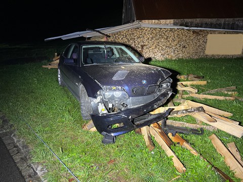 Am Samstag (20.08.2022) kurz nach Mitternacht fuhr ein 24-jähriger Fahrzeuglenker mit dem Personenwagen von Appenzell in Richtung Enggenhütten. Aufgrund den Witterungs- und Strassenverhältnissen nicht abgepassten Fahrweise, verlor der Mann in der SOS-Kurve die Kontrolle über das Fahrzeug, fuhr über die Gegenfahrbahn und kollidierte mit der Scheiterbeige, welche neben der Fahrbahn auf der Wiese stand. Der Lenker, sowie die 21-jährige Beifahrerin wurden nicht verletzt. Am Fahrzeug entstand Totalschaden und musste durch den Abschleppdienst geborgen werden.