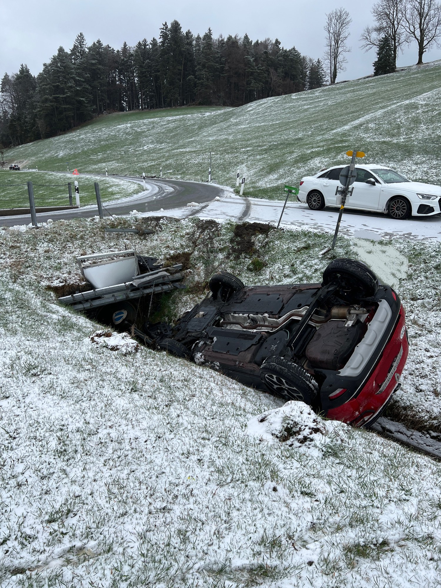 Am Montagvormittag (27.03.2023) kurz nach 10:00 Uhr fuhr eine 36-jährige Frau auf der Najenstrasse vom Torfnest her in Richtung Schachen. In einer Rechtskurve geriet das Auto auf der frisch verschneiten Strasse ins Rutschen, durchbrach einen Eisenzaun und überschlug sich ins Bachbett vom Najenbach. Die Fahrzeuglenkerin zog sich leichte Verletzungen zu und wurde vom Rettungsdienst in Spitalpflege gebracht. Im Einsatz standen die Feuerwehr Oberegg-Reute, ein Abschleppdienst mit Kran, das Amt für Umwelt von Appenzell Innerrhoden und die Kantonspolizei.