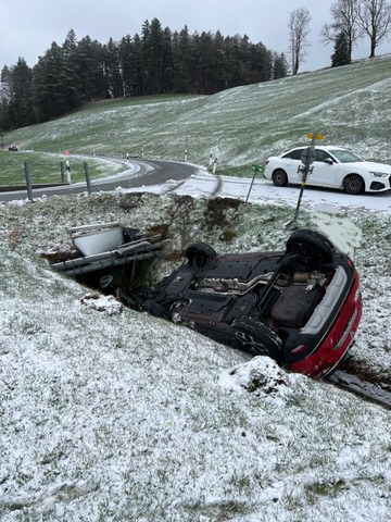 Oberegg - Selbstunfall auf verschneiter Strasse