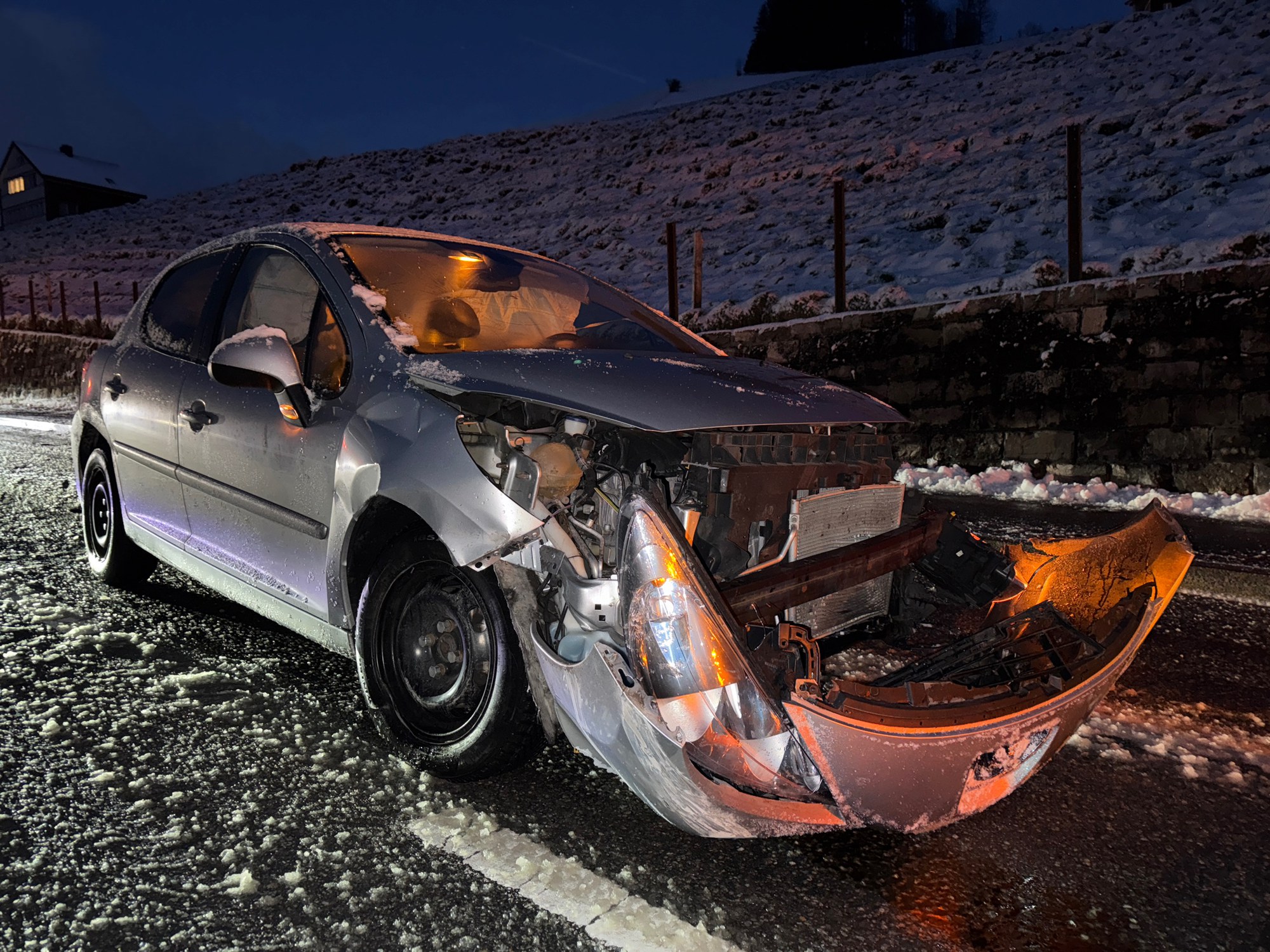 Am Freitagmorgen (20.12.2024), kurz vor 07.00 Uhr fuhr ein 18-jähriger Mann mit seinem Auto von Gontenbad her in Richtung Appenzell. Auf der leicht mit Schneematsch bedeckten Strasse geriet das Fahrzeug ausser Kontrolle, kollidierte mit der rechtsseitigen Leitplanke, rutschte über die Gegenfahrbahn und das dortige Trottoir in die Stützmauer und kam auf der Gegenfahrbahn zum Stillstand. Glücklicherweise wurde niemand verletzt. Am Auto entstand Totalschaden.