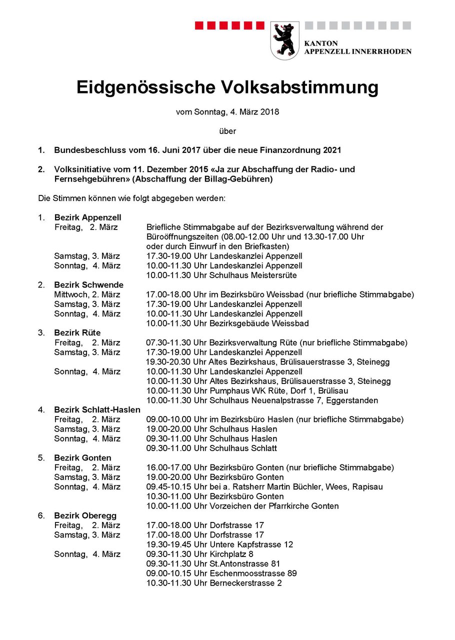 Eidgenössische Abstimmung vom 4. März 2018 https://publisher-ai.webcloud7.ch/themen/staat-und-recht/abstimmungen-und-wahlen/abstimmungstermine/eidgenoessische-abstimmung-vom-4-maerz-2018 https://publisher-ai.webcloud7.ch/logo.png Eidgenössische Abstimmung vom 4. März 2018 ICS Export Wann 03.03.2018 Bild Legende: Bild Legende: