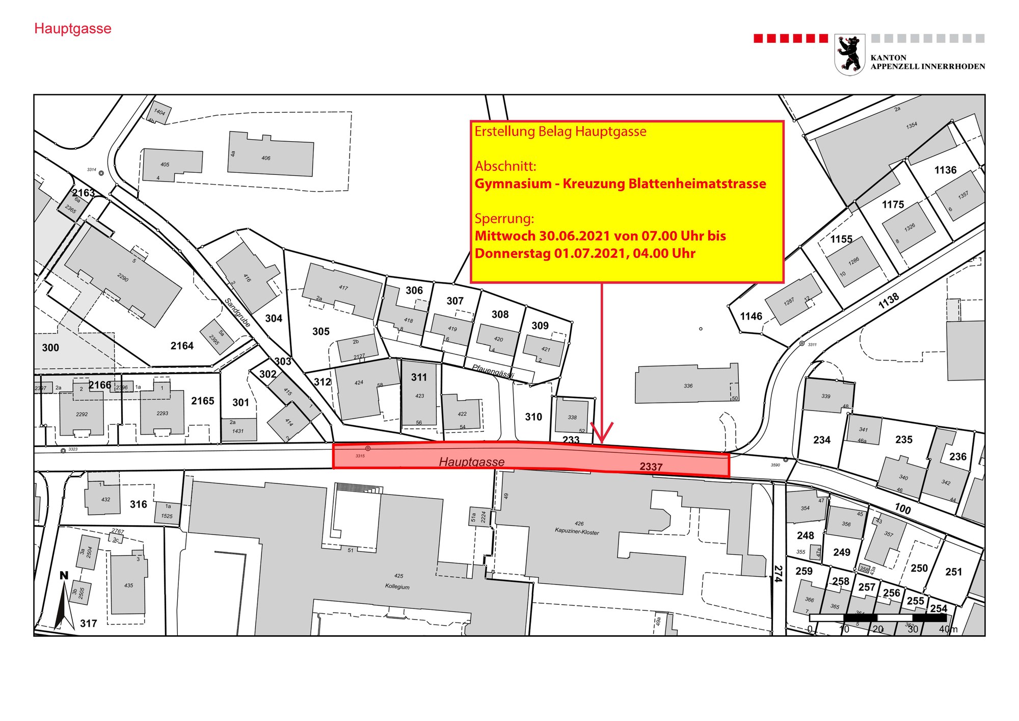 Gestützt auf Art. 3 Abs. 2 des Strassenverkehrsgesetzes (SVG) und Art. 1 Abs. 1 des Einführungsgesetzes zum Strassenverkehrsgesetz wird wegen Belagsarbeiten folgende Kantonsstrasse für den gesamten Fahrverkehr gesperrt: