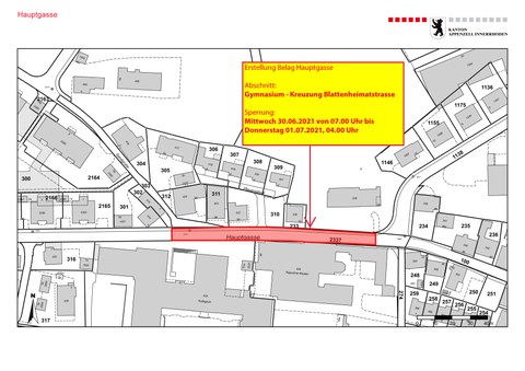 Die Umleitung wird signalisiert. Die Zu- oder Wegfahrt für die Baustellenanstösser ist nicht möglich. Witterungsbedingte Verschiebungen auf den nächstmöglichen Werktag sind möglich.
