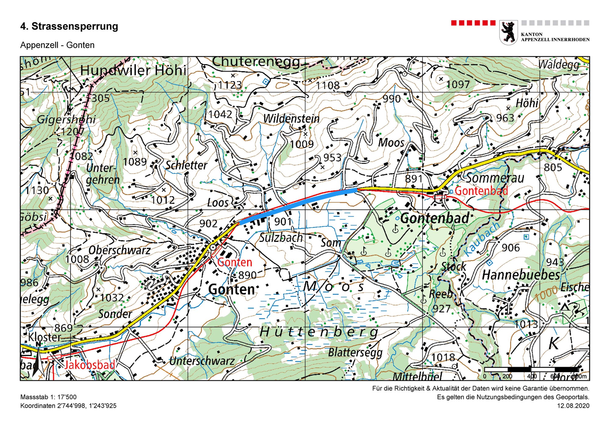 Strassensperrung: Appenzell - Gonten