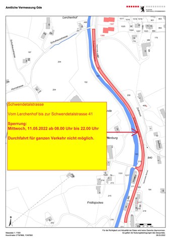 Bereich Lerchenhof bis Schwendetalstrasse 41 Mittwoch, 11.05.2022 von 08.00 Uhr bis 22.00 Uhr
