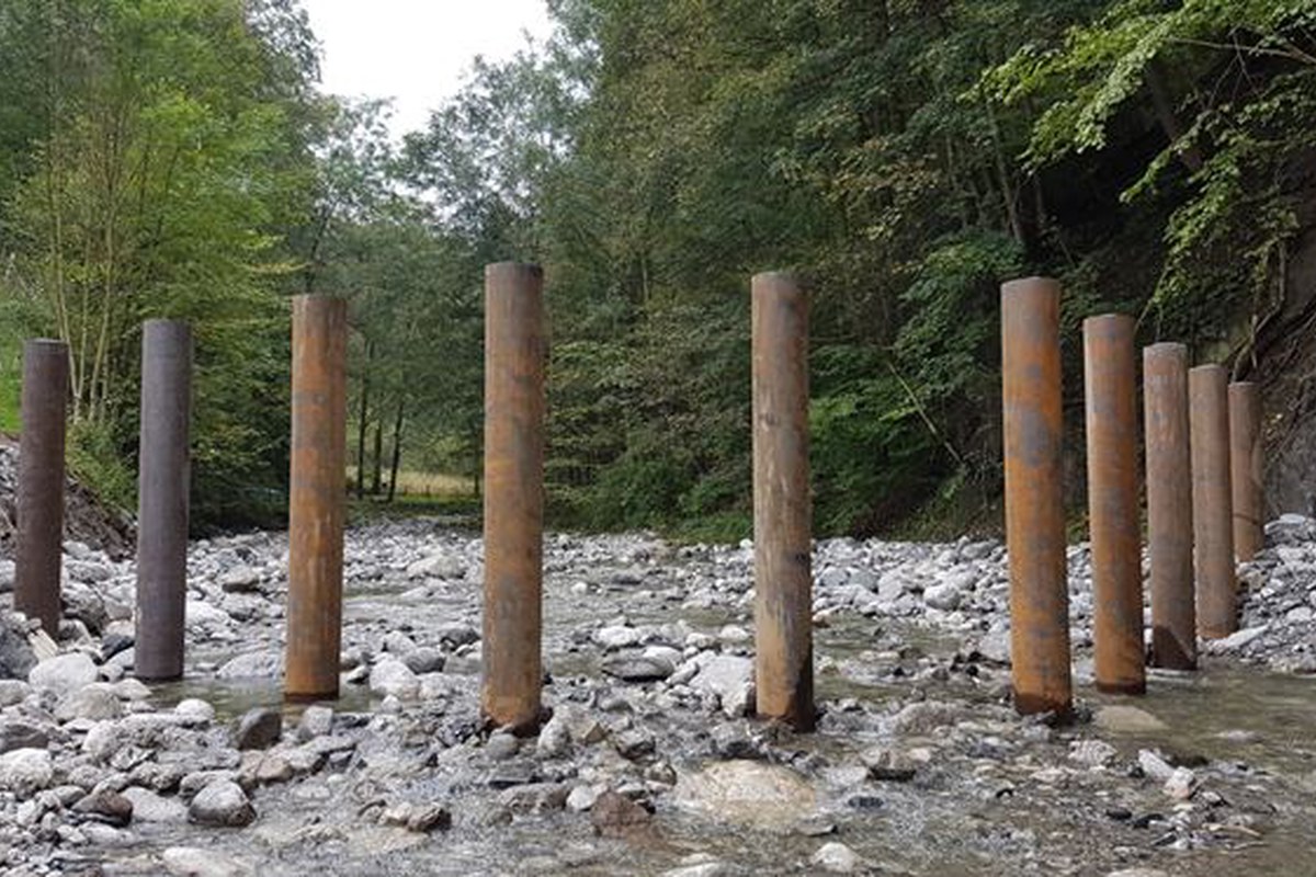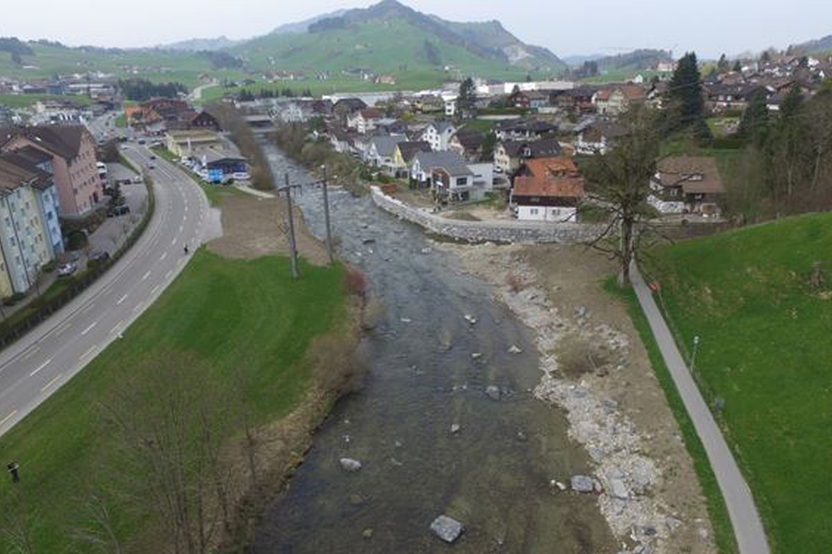 Zum Gewässerbau gehören alle über den Unterhalt hinausgehenden Arbeiten, insbesondere alle baulichen Massnahmen zur Sicherung der Sohle und der Ufer sowie für den Geschieberückhalt. Unter den Begriff Gewässerbau fallen auch Wiederherstellungsarbeiten an Schutzanlagen, die trotz sorgfältigem Unterhalt durch Naturereignisse zerstört worden sind, die Erneuerung, die Offenlegung oder der Ersatz von Eindolungen, die Entwässerung von Rutschgebieten, die Aufforstung und Neubepflanzung von Hängen und Böschungen im Bereiche von Gewässern sowie die Wiederherstellung naturnaher Verhältnisse bei wasserbaulich belasteten Gewässern. Die Ausarbeitung eines Gewässerbauprojektes und dessen Ausführung sind Sache des Departementes.