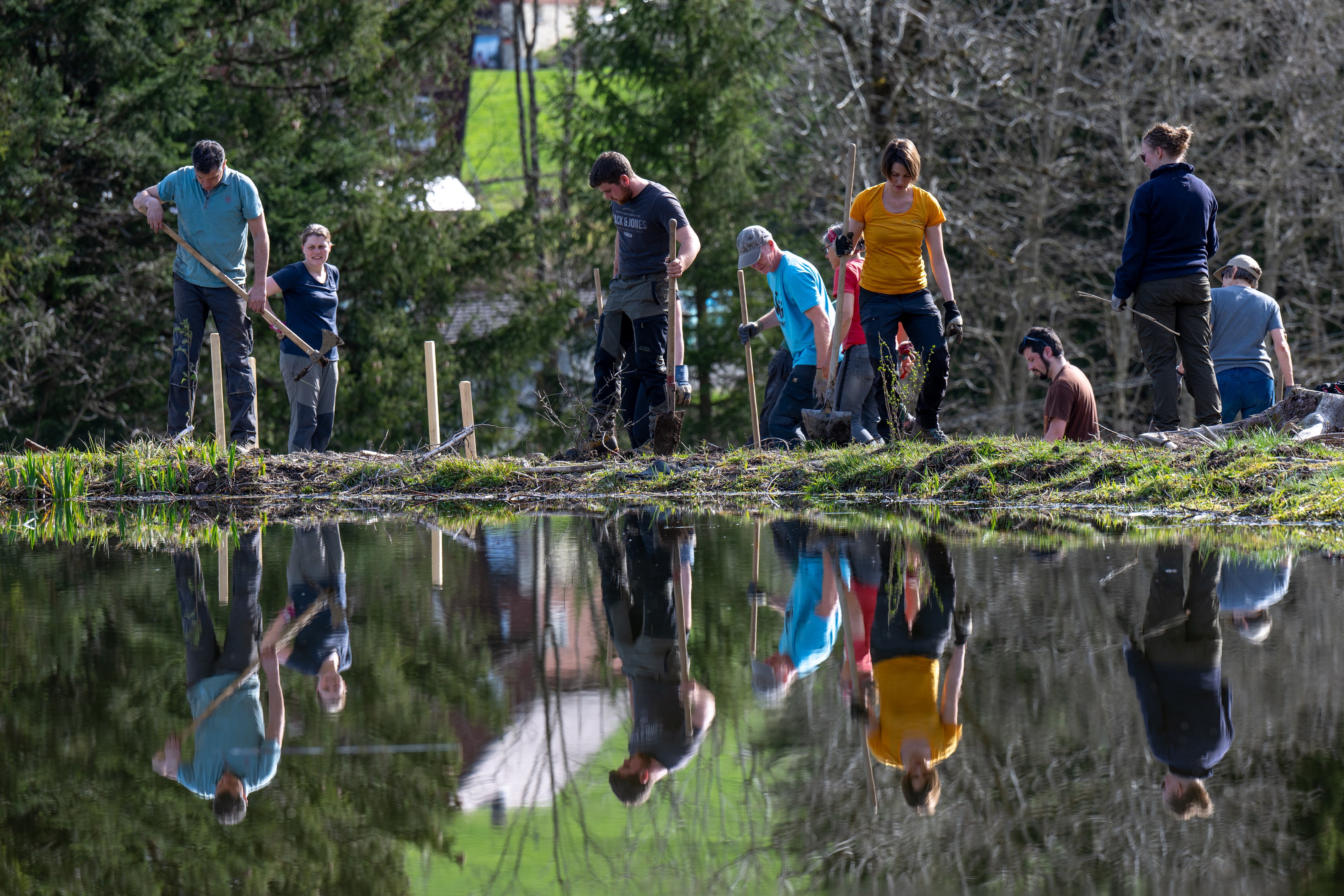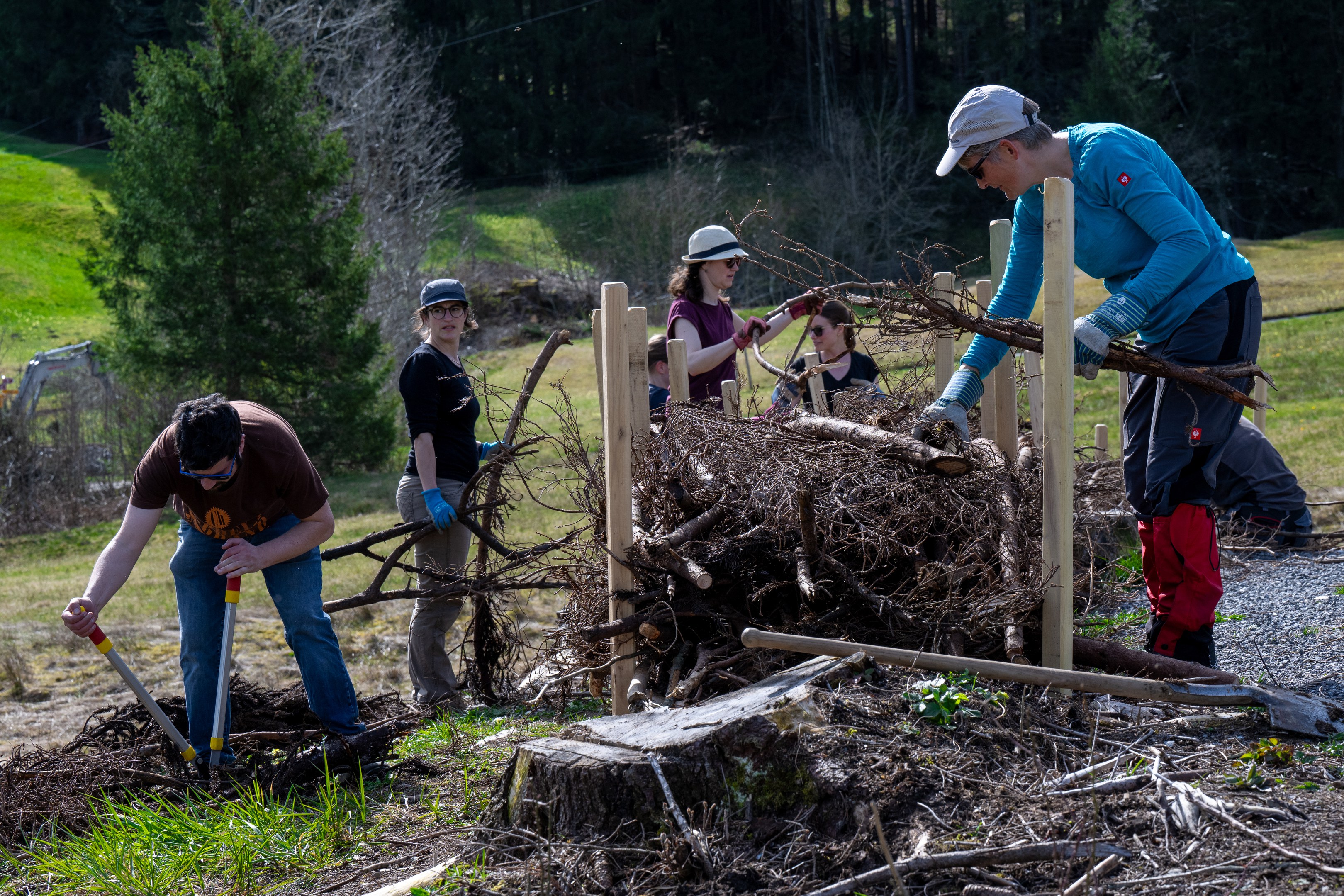 Die Renaturierungsarbeiten an den Kaubadweihern sind fertiggestellt. Freiwillige des Naturverbunds und des WWFs sowie Jungjägerinnen und Jungjäger haben Anfang April die letzten Aufwertungen an den Kaubadweihern umgesetzt. Gemeinsam wurden Kleinstrukturen für die einheimische Tierwelt geschaffen.