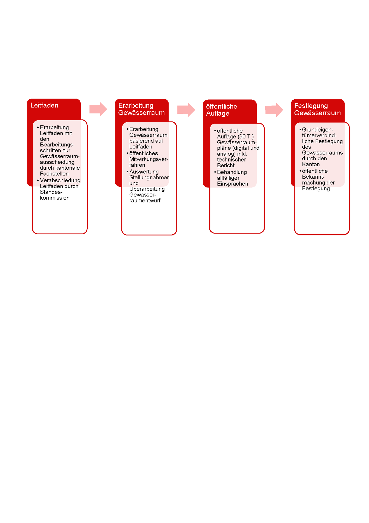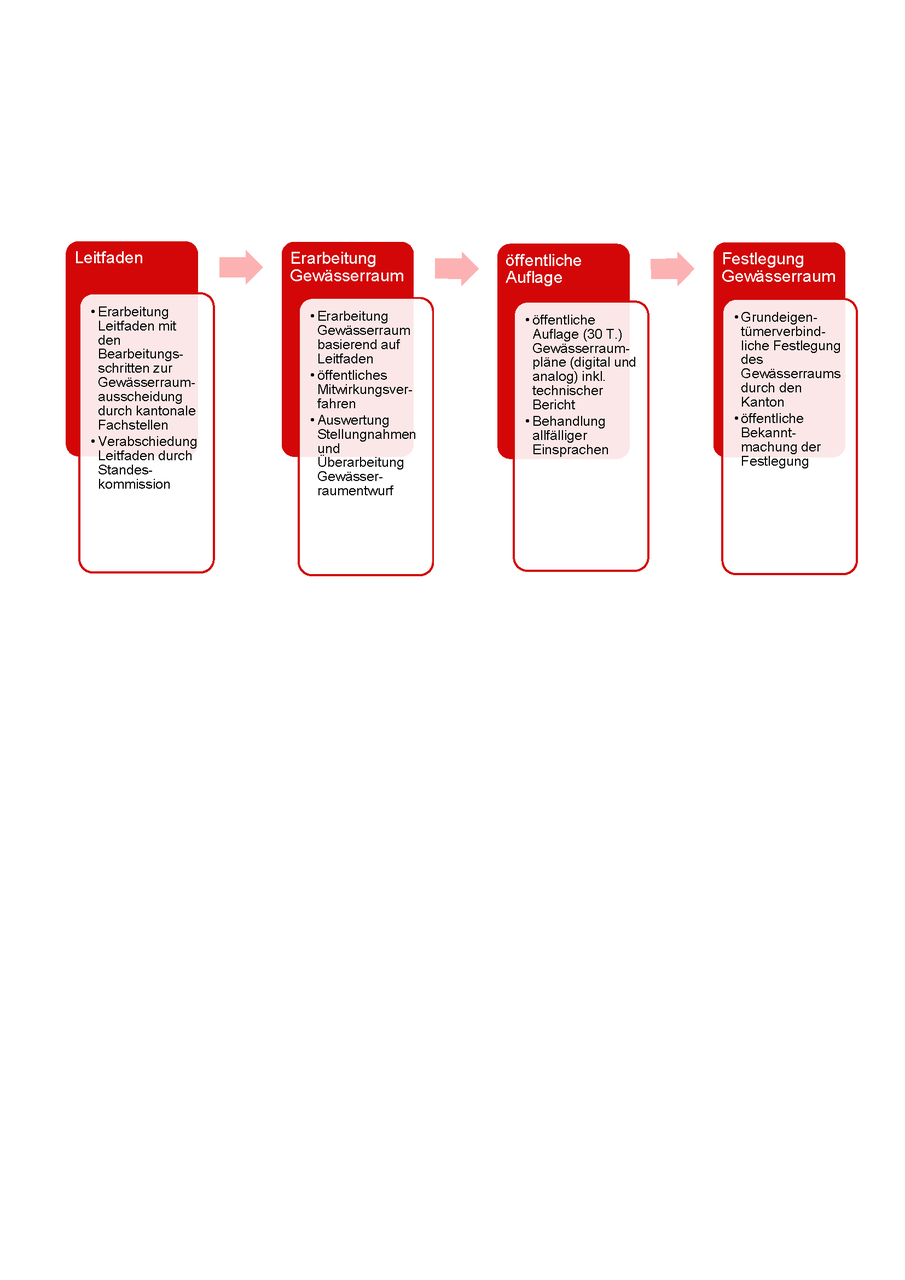 Verfahren Festlegung https://publisher-ai.webcloud7.ch/themen/staat-und-recht/infrastruktur-kantonal/wasserbau/gewaesserraum/verfahren-festlegung https://publisher-ai.webcloud7.ch/logo.png Verfahren Festlegung Im Kanton Appenzell Innerrhoden wird der Gewässerraum für den gesamten Kanton durch das Amt für Umwelt festgelegt. Das Festlegungsverfahren folgt dabei den folgenden Schritten: Bild Legende: