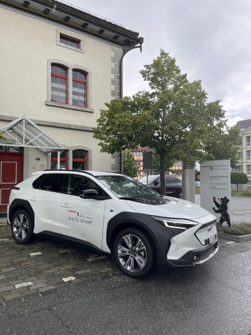 Mit Spannung wurde das erste, rein elektrisch betriebene Pikettfahrzeug des Amts für Umwelt erwartet. Das Fahrzeug ersetzt ein herkömmlich angetriebenes Fahrzeug, das aufgrund des Alters und der Kilometerleistung ausser Dienst genommen wurde. Das Elektroauto wurde speziell für Piketteinsätze angeschafft und trägt zur nachhaltigen Mobilität im Kanton bei. Nach verschiedenen Testfahrten fiel der Entscheid auf einen Subaru Solterra, da auch Einsätze im Gelände zu leisten sind.