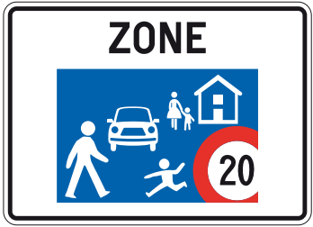 Den Verkehrsteilnehmenden werden der besondere Charakter der Strassen und die damit verbundenen möglichen Gefahrenquellen signalisiert. Die zulässige Höchstgeschwindigkeit beträgt 20km/h und die Fussgängerinnen und Fussgänger dürfen die ganze Verkehrsfläche benutzen. Sie sind gegenüber den Fahrzeugführenden vortrittsberechtigt, dürfen jedoch Fahrzeuge nicht unnötig behindern. Das Parkieren ist nur an den durch Signale oder Markierungen gekennzeichneten Stellen erlaubt.