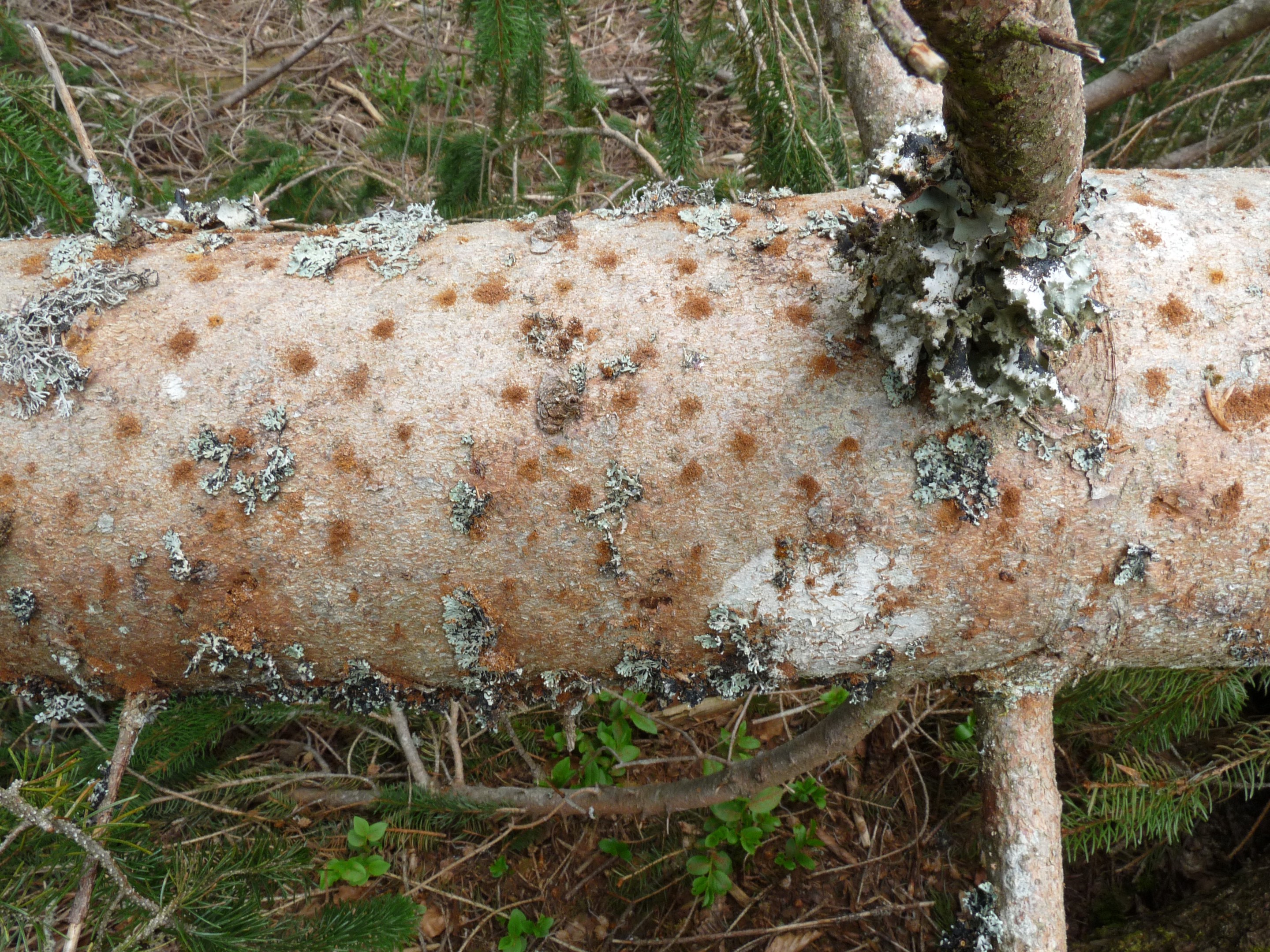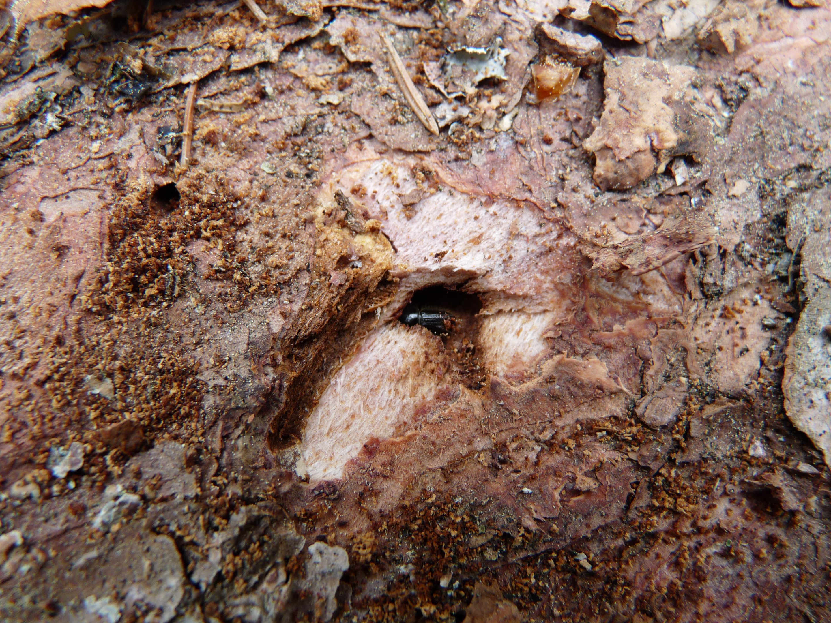 Deutlicher Befall an noch nicht aufgerüstetem Sturmholz