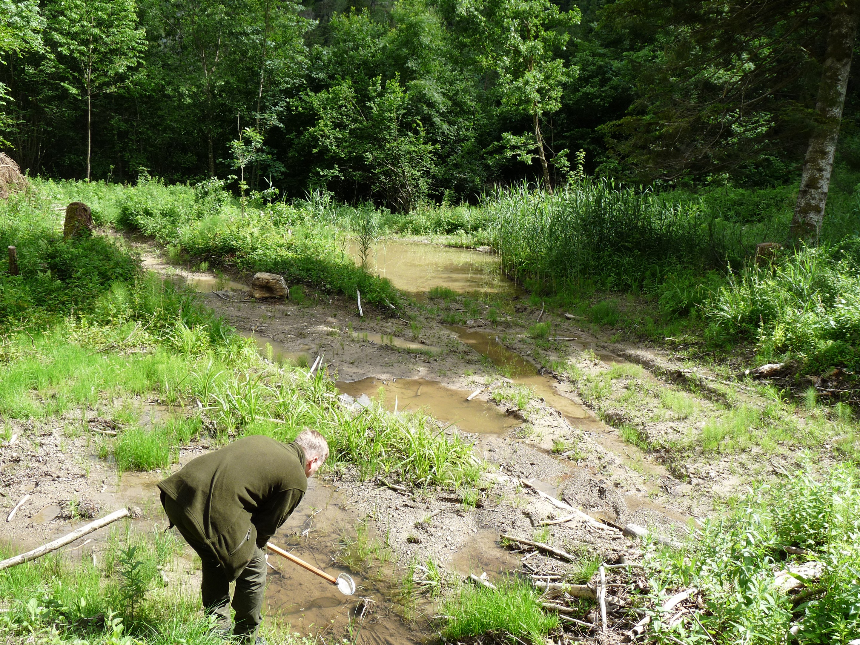 Ende Juni 2021 ist zudem eine stattliche Anzahl an Larven des in der Schweiz gefährdeten Feuersalamander anzutreffen.